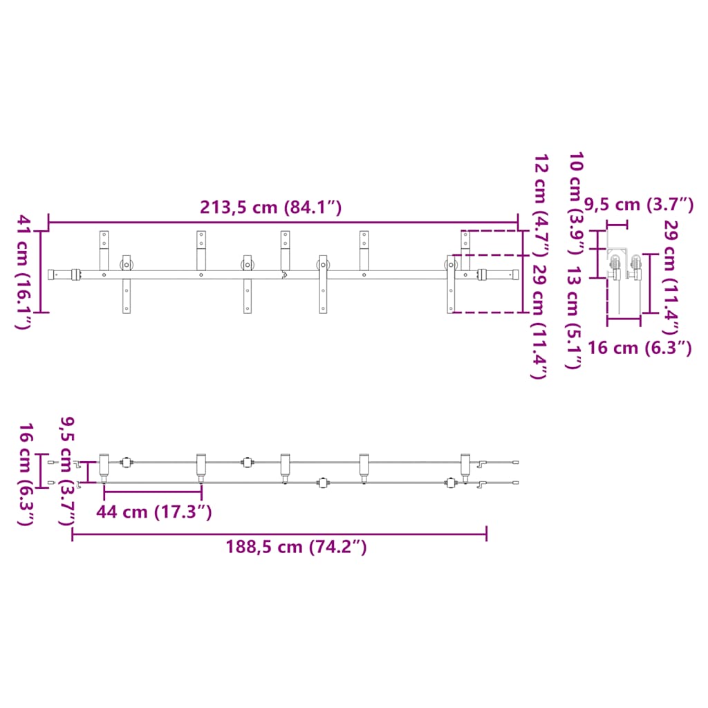- Skupna dolžina drsnih vodil: 213,5 cm