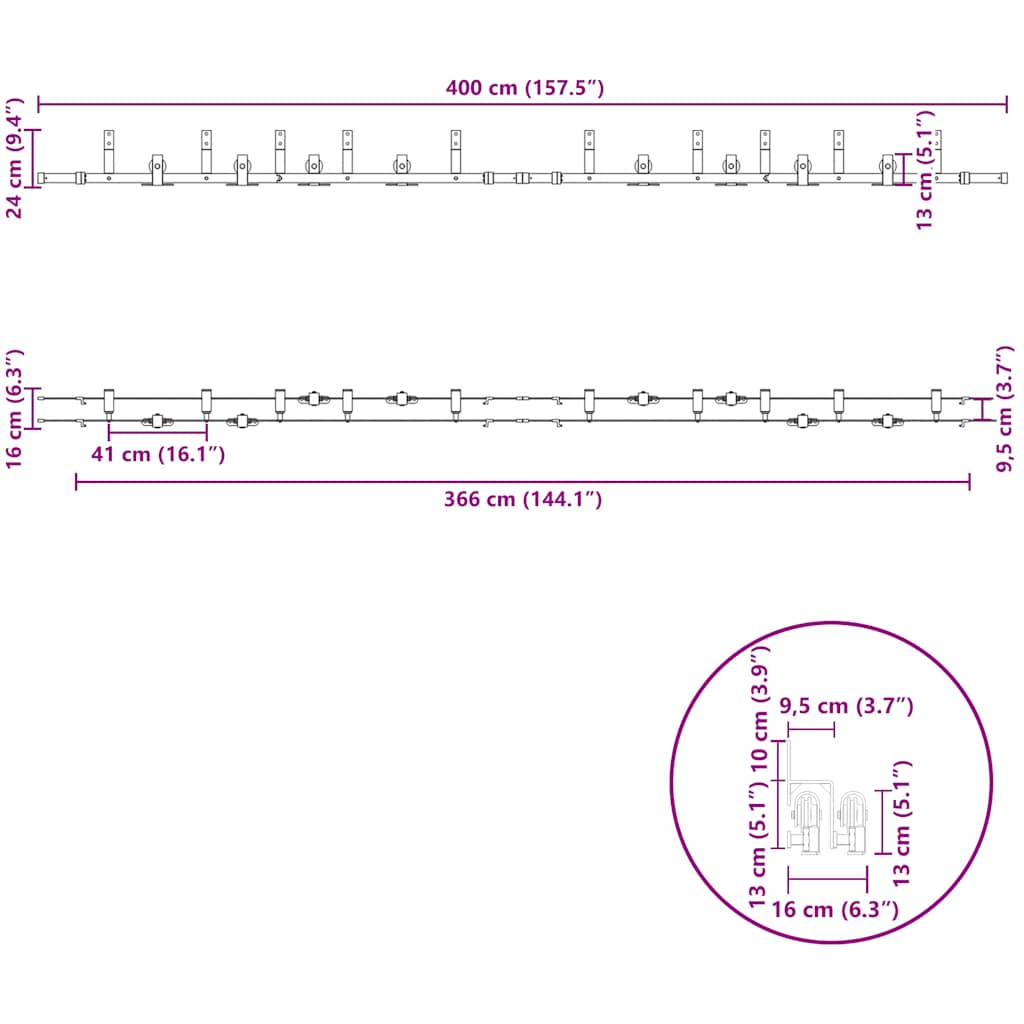 Komplet opreme za drsna vrata 400 cm jeklo črne barve