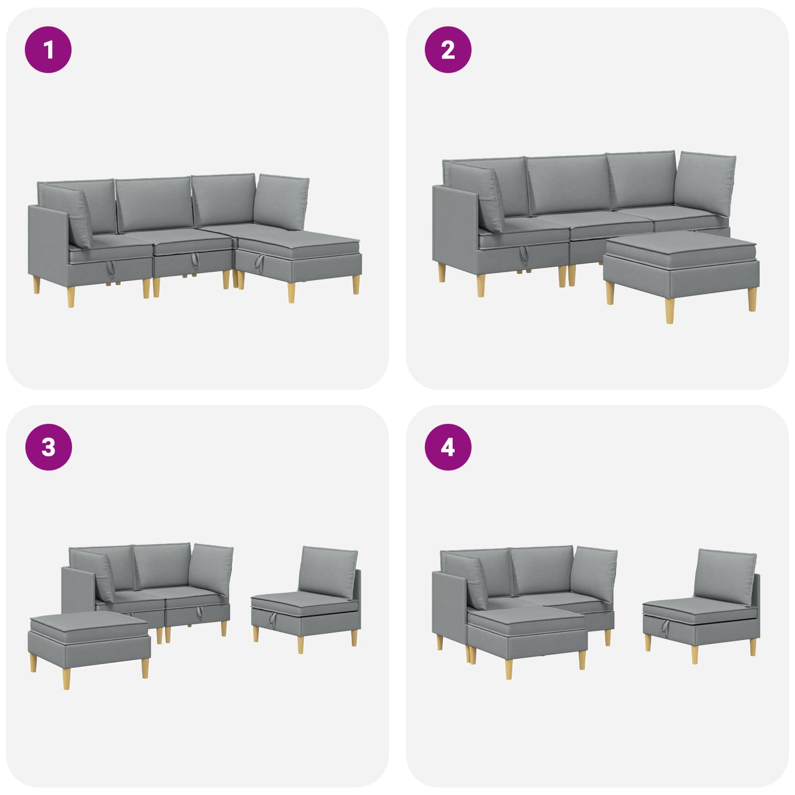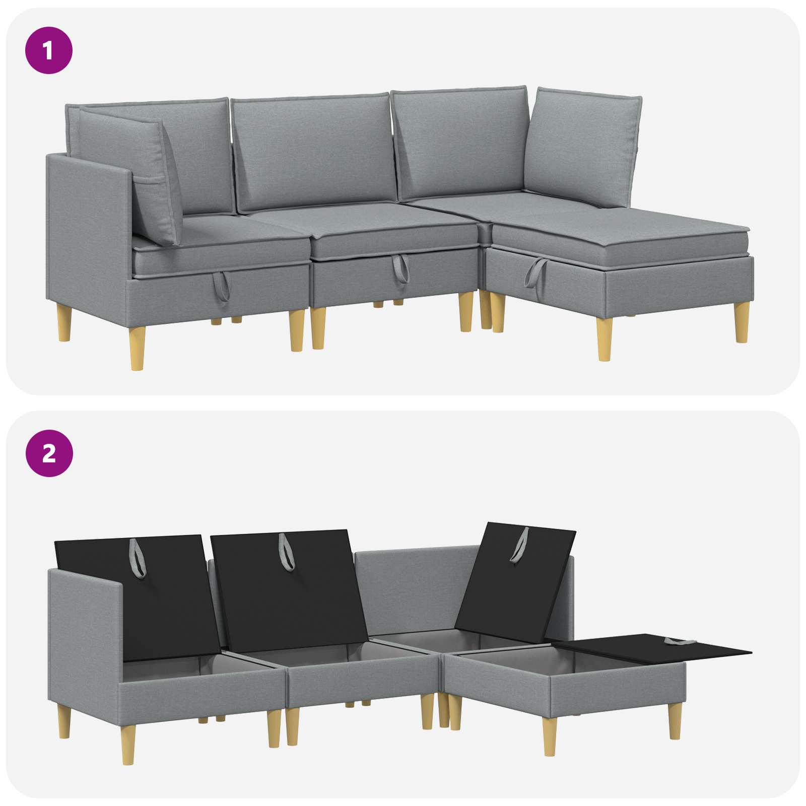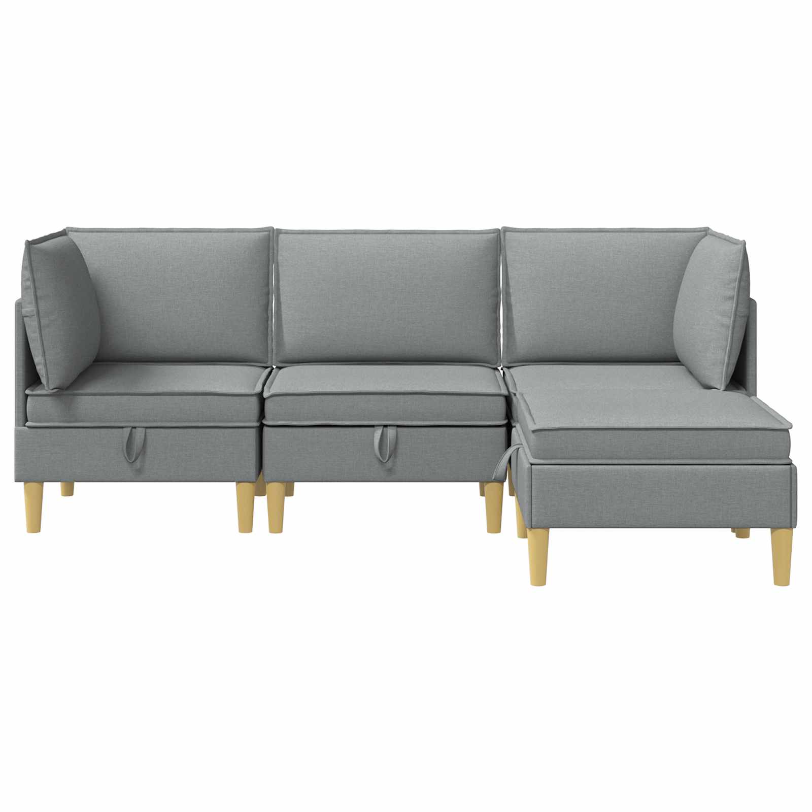 Ta moderni modularni kavč s shrambo združuje praktične lastnosti s sodobnim stilom. Zasnovan je za tiste, ki imajo radi moderen videz in se dobro prilega različnim dnevnim sobam. Sedenje je udobno, medtem ko skrito shranjevanje pomaga ohranjati prostor organiziran. Mehki blazini dajejo prijeten občutek, primeren tako za družine kot posameznike. Trdni materiali: Ta set vključuje inženirski les in tkanino, okvir pa je iz vezanega lesa, zasnovanega za dolgoročno stabilnost. Blazine so oblečene s poliester tkanino, ki je enostavna za vzdrževanje in ohranja svoj videz tudi pri redni uporabi, kar njen videz naredi svež in ustrezen za vsakodnevnike. Modularna zasnova: Vsak kos v setu je zasnovan za prilagodljivo postavitev, kar vam omogoča, da razporeditev prilagodite različnim prostorom in potrebam. Modularna struktura omogoča preureditev za družabne dogodke ali vsakodnevno uporabo, snemljive prevleke blazin pa zagotavljajo enostavno čiščenje in urejen videz. Obilno shranjevanje: Praktično zasnovan, ta set pohištva vključuje skrite predale, ki nudijo priročne shranjevalne rešitve. Ti prostori pomagajo ohranjati osnovne stvari v dnevni sobi organizirane, ne da bi vplivali na skupni stil, saj združujejo funkcionalnost in moderni videz za sodobne dnevne sobe. Sodoben dizajn: Set se ponaša s sodobnim dizajnom, čistimi linijami in postavitvijo s podstavkom. Njegov vsestranski slog se lepo dopolnjuje z različnimi notranjimi dekoracijami, kar vsaki dnevni sobi doda kanček elegance. Enostavno vzdrževanje: S preprostimi navodili za nego, kot je brisanje s mehko, suho krpo, ohranjanje tega seta pohištva svežega zahteva minimalen trud. Izogibanje močnim kemikalijam pripomore k dolgoročnemu videzu in ohranja prvotno privlačnost seta.