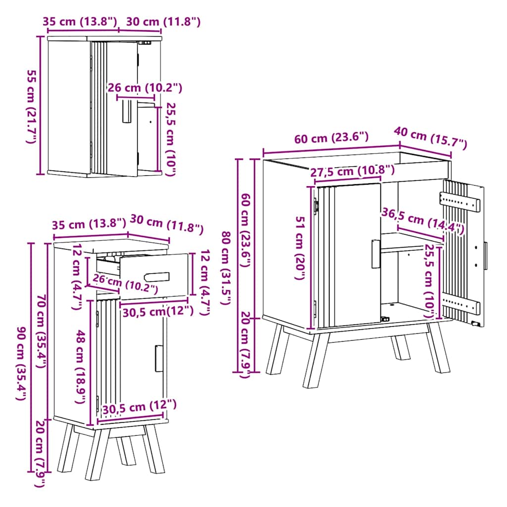 - 1 x Kopalniška omarica: 35 x 30 x 55 cm (DxŠxV)