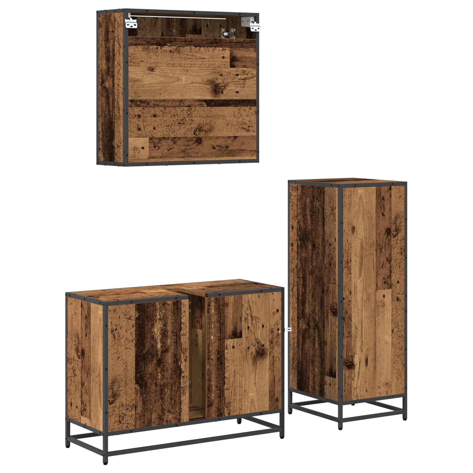 Ta komplet moderne kopalniške opreme prinaša še večjo eleganco in praktičnost v vašo kopalnico. Pravokotni dizajn se enostavno prilagodi vsakemu sodobnemu prostoru. Ta pohištveni komplet, znan po svoji preprostosti, je popoln za vsakogar, ki želi moderno in funkcionalno izbiro. Čiste linije in minimalistična oblika dopolnjujejo estetiko vrhunske kopalnice. Gradnja iz inženirskega lesa Ta material nudi moč in dolgo življenjsko dobo. Odpornost proti vlagi ga naredi popolnega za kopalnice, saj je zmožen zdržati vlago in obdržati eleganten izgled. Funkcionalne komponente Komplet je zasnovan za pametno izrabo prostora. Omara za ogledalo, omara pod umivalnikom in dodatni elementi so zasnovani, da zadovoljijo vse shranjevalne potrebe. Njihove police nudijo trdno osnovo za organizacijo potrebščin, kar omogoča čisto in brezsitezno okolje. Stilska zasnova Detajli kompleta odražajo sodobno oblikovalsko filozofijo. Ravna vrata in gladke površine dajo moden pridih, črne stebrične noge pa zagotavljajo stabilnost. Tak dodatek ustvarja breztensko in razkošno kopalniško oazo. Inovativno varčevanje s prostorom Stenska montažna enota izkoristi vsak centimeter in je odlična izbira za manjše kopalnice, ki želijo pametno uporabiti vertikalno shranjevanje. Povečuje občutek odprtosti in zračnosti. Enostavno vzdrževanje Ta komplet je preprost za čiščenje. Preprosto obrišite z vlažno krpo, da odstranite prah in vlago. Zelo uporabniku prijazna rutina, ki podpira dolgoročno estetiko in funkcionalnost pohištva.
