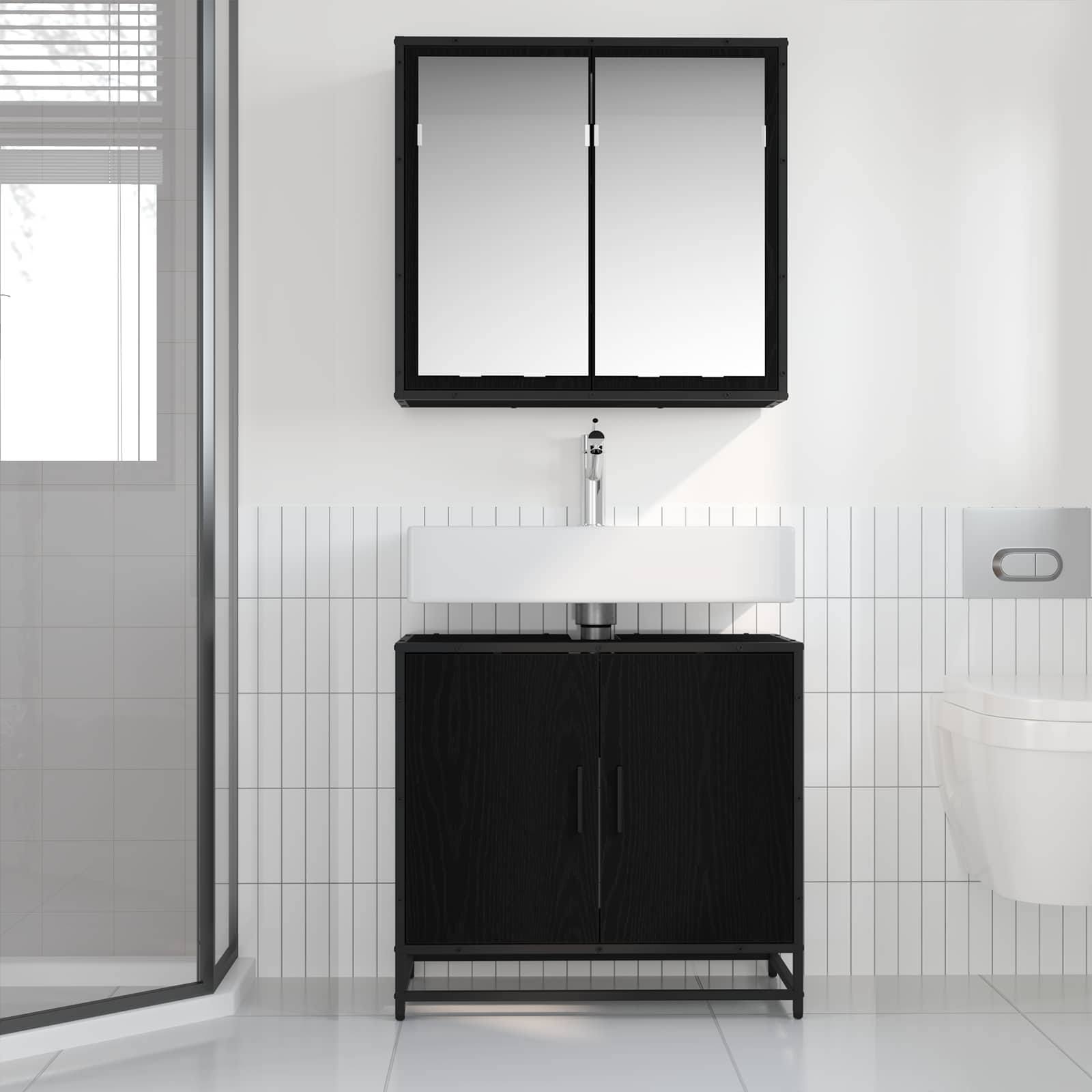 Ta eleganten in moderni komplet kopalniškega pohištva združuje funkcionalnost in stil, kar je popolno dopolnilo vsaki sodobni kopalnici. Vključuje omarico z ogledalom in omarico z umivalnikom za eleganten in organiziran videz. Zasnovan za preprostost in učinkovitost prostora, izboljšuje vzdušje s čistimi linijami in gladkimi površinami. Idealno za tiste, ki ljubijo minimalistični slog, ta komplet zadostuje potrebam uporabnikov, ki iščejo tako obliko kot funkcionalnost. Struktura iz inženirskega lesa Komplet je izdelan iz inženirskega lesa, kar zagotavlja trdno in vzdržljivo zgradbo, ki zdrži. Dosledna tekstura nudi čist in modern videz, kar je idealno za izboljšanje estetike kopalnice. Inženirski les je tudi odporen na upogibanje, kar ga dela zanesljivo izbiro za kopalniška okolja. Police iz plošč Obe omarici imata police iz inženirskega lesa, ki nudijo robustno podporo in praktične rešitve za shranjevanje. Police so prostorne in odlične za organizacijo toaletnih potrebščin in čistil, kar pomeni, da je vse na svojem mestu, brez zmede. Funkcionalni elementi Opremljene s flush vrati in modernimi ročaji, omarice povezujejo funkcionalnost in estetsko privlačnost. Flush vrata omogočajo gladko površino, ki dopolnjuje moderno zasnovo, medtem ko ročaji nudijo enostaven dostop, kar doda pridih sofisticiranosti. Učinkovita zasnova prostora Stenska namestitev prihrani prostor na tleh, kar dela komplet odlična izbira za manjše kopalnice. Z dviganjem enot s tal je enostavno čistiti pod njimi, kar prispeva k urejenemu okolju. Enostavno vzdrževanje Z enostavnim brisanjem z vlažno krpo lahko držite prvotni videz kompleta brez težav. Redna nega zagotovi, da pohištvo ohrani svoj sijaj, kar podaljša njegovo življenjsko dobo in ohranja njegov eleganten videz.