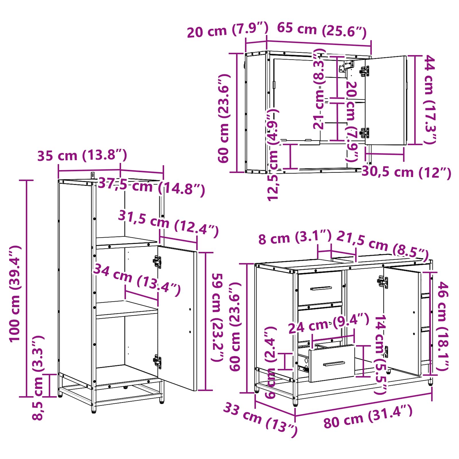 Ta moderni set kopalniškega pohištva je super funkcionalna rešitev za vsako kopalnico. Eleganten in minimalističen slog prinaša sodoben dizajn in ponuja dovolj prostora za shranjevanje vseh vaših potrebščin. S čisto kombinacijo linij in sofisticiranega videza se ta set super ujema z vsakim dekorjem. Idealno za tiste, ki cenijo funkcionalnost in šik izgled, vključuje komponente, ki ne le izboljšujejo videz kopalnice, ampak tudi optimizirajo shranjevanje. Gradnja iz inženirskega lesa Ta set iz trpežnega inženirskega lesa ponuja trdno in privlačno rešitev za shranjevanje v kopalnici. Material nudi stabilnost in moč ter je zanesljiva izbira za vsakodnevno uporabo. Celovite komponente Set vključuje ogledalno omarico, omarico za umivalnik in dodatno omarico. Vsaka komponenta je zasnovana za optimalno izrabo prostora in nudi različne možnosti shranjevanja za organizacijo vaše kopalnice. Ti elementi nudijo praktično podporo za vsakodnevne raje in zagotavljajo dovolj prostora za vaše potrebščine. Sodobna estetika Set pohištva ima eleganten dizajn s subtilnimi zaključki, kar ustvarja usklajen izgled, ki se prilega različnim slogom kopalnic. Čiste linije in gladke površine prinašajo minimalistično vzdušje, kar doprinese k mirnemu ambientu. Oblika, ki prihrani prostor Montaža na steno omogoča učinkovito izrabo prostora, kar zagotavlja, da vaša kopalnica izgleda prostorna. Ta pametna rešitev je odlična za kopalnice vseh velikosti. Enostavno vzdrževanje Vzdrževanje je hitro, saj preprosto obrišete površine z vlažno krpo, da ohranite njihov prvotni videz. Ta minimalistični dizajn zagotavlja, da vaša kopalnica izgleda sveža brez napora.