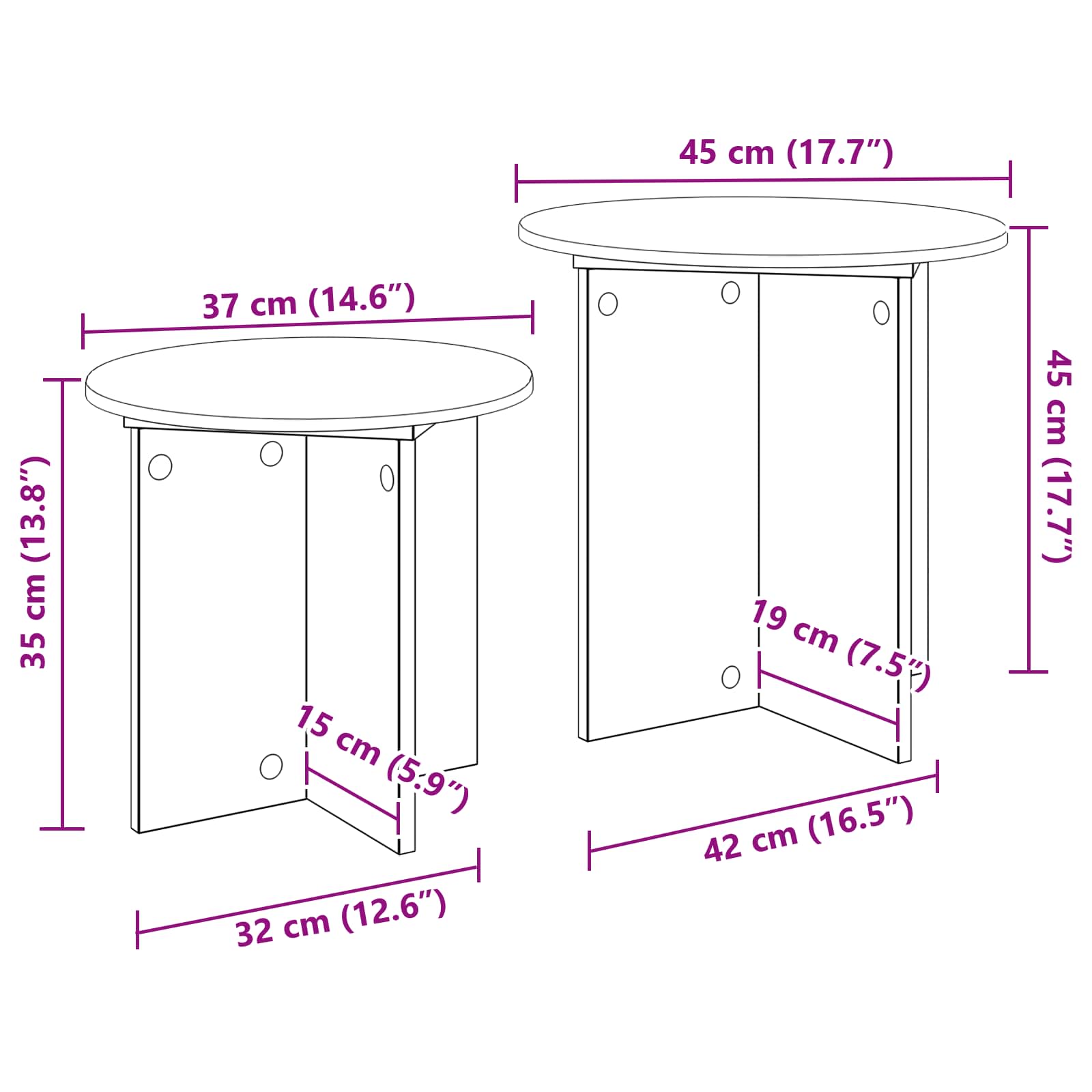 - 1 x Stranska mizica: Ø 45 x 45 cm (Ø x H)