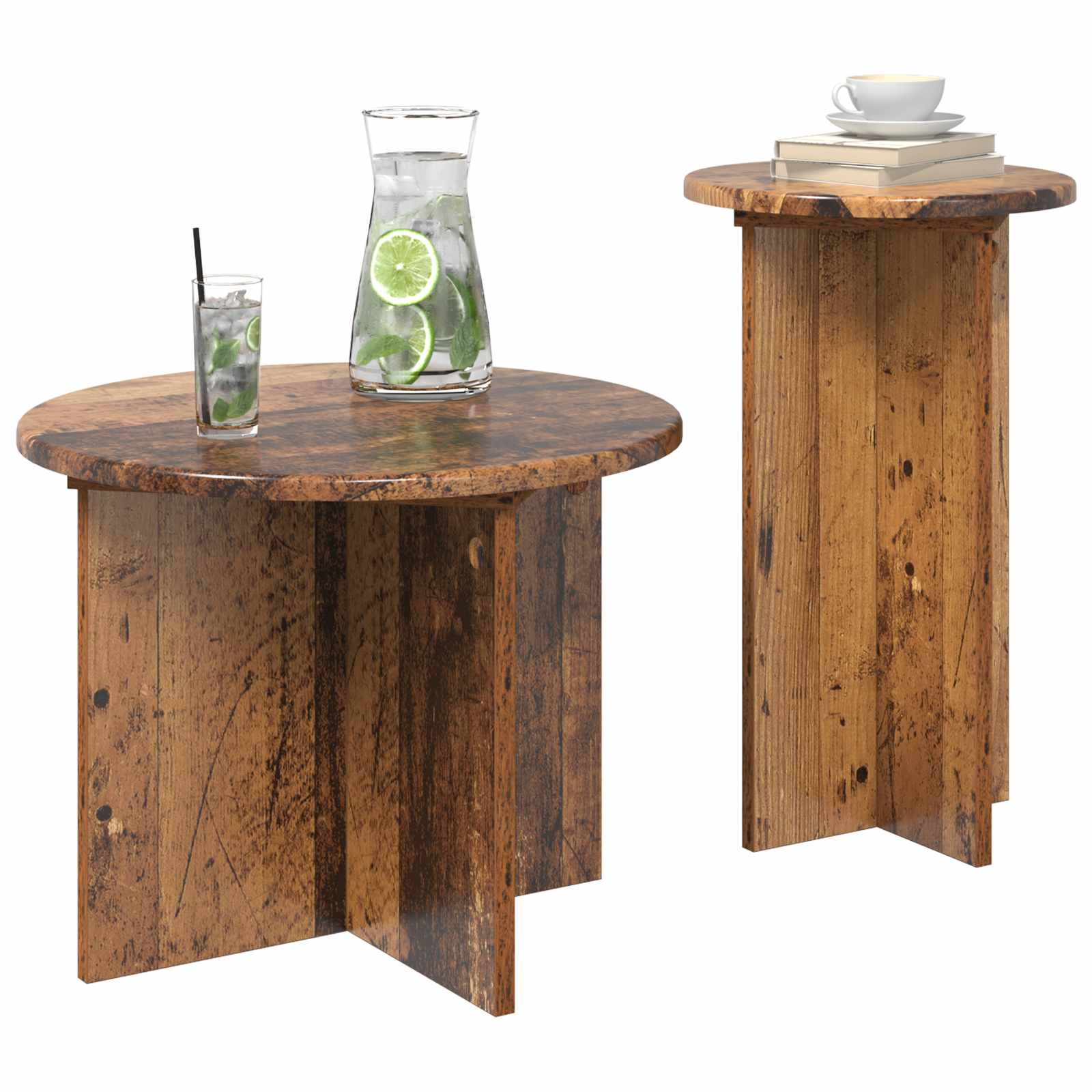 Sodobni komplet stranskih mizic združuje preprostost in funkcionalnost, kar ga dela popoln dodatek za sodobne bivalne prostore, kot so dnevne sobe ali spalnice. Njihova elegantna in minimalistična zasnova prijetno vadi modernost ter se lepo prilega različnim stilom, obenem pa omogoča postavitev svetilk, pijač ali dekorativnih predmetov. Predstavljajte si, kako lepo stoji ob vašem kavču ali postelji in ponuja prijetno in stilizirano površino za osebne stvari in dekor. Visokokakovosten inženirski les: Ta komplet mizic se ponaša z trdno konstrukcijo iz inženirskega lesa, znanega po svoji vzdržljivosti. Gladko in enakomerno površje zdrži vsakodnevno uporabo in ostaja čisto, kar prinaša sodoben pridih. Funkcionalna površina: Mizice imajo skupne dimenzije Ø 45 x 35 cm in Ø 29.5 x 49 cm, kar je super za postavljanje osebnih predmetov, dekorativnih enot ali drobnih gospodinjskih potrebščin. Te dimenzije omogočajo vsestransko uporabo, zlasti v majhnih prostorih. Široka uporabnost: Ta moderni set mizic se odlično prilega v dnevne sobe in spalnice ter je praktičen in kompaktne zasnove. Idealno stoji ob kavčih ali posteljah ter drži potrebne stvari kot so daljinski upravljalniki ali svetilke, kar ga dela nujno za vsakdanje življenje. Enostavno čiščenje: Vzdrževanje je enostavno — preprosto ga obrišite z vlažno krpo, da ohranite mizice v dobrem stanju. Izogibajte se močnim čistilom in abrazivnim materialom za zaščito površine in dolgotrajno uporabnost. Enostavna sestava: Sestavljanje zahteva dve osebi in izvijač, kar zagotavlja brezskrbno nastavitev. Postopek je podrobno opisan v navodilih, tako da lahko preprosto ustvarite stabilen kos pohištva za vaš prostor.