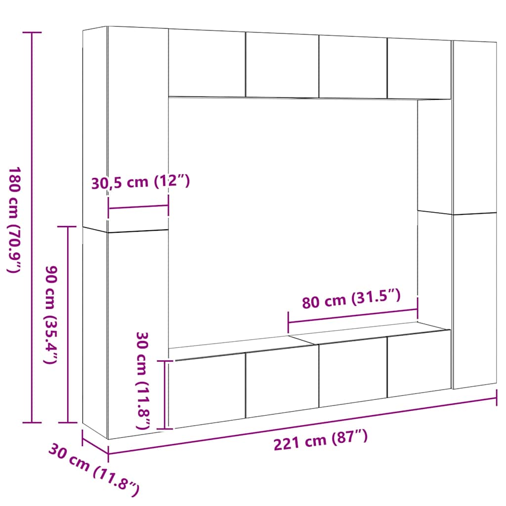 Ta komplet trdnih TV omaric s trendovskim in praktičnim dizajnom je izdelan tako, da bo postal ključna točka vašega prostora. To TV stojalo je pritrjeno na steno, zato je brezčasen dodatek vašemu domu. Ima veliko predelkov ter je idealen prostor za shranjevanje vseh vaših knjig, revij, DVD-jev ali drugih predmetov. Stereo omarica je preprosta za vzdrževanje in čiščenje z vlažno krpo.