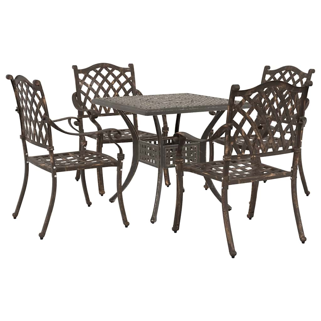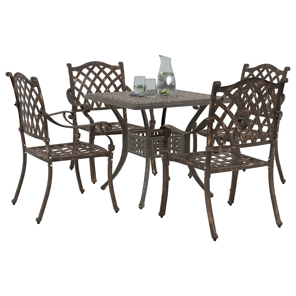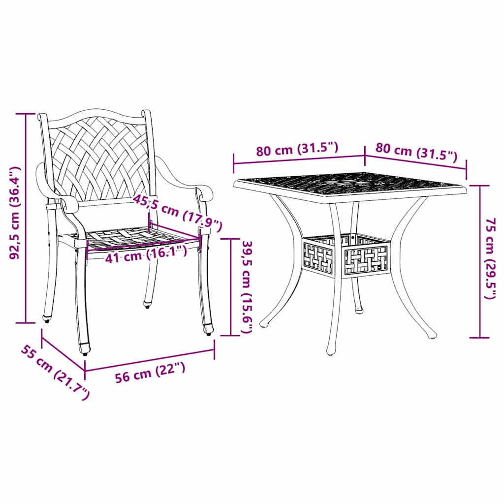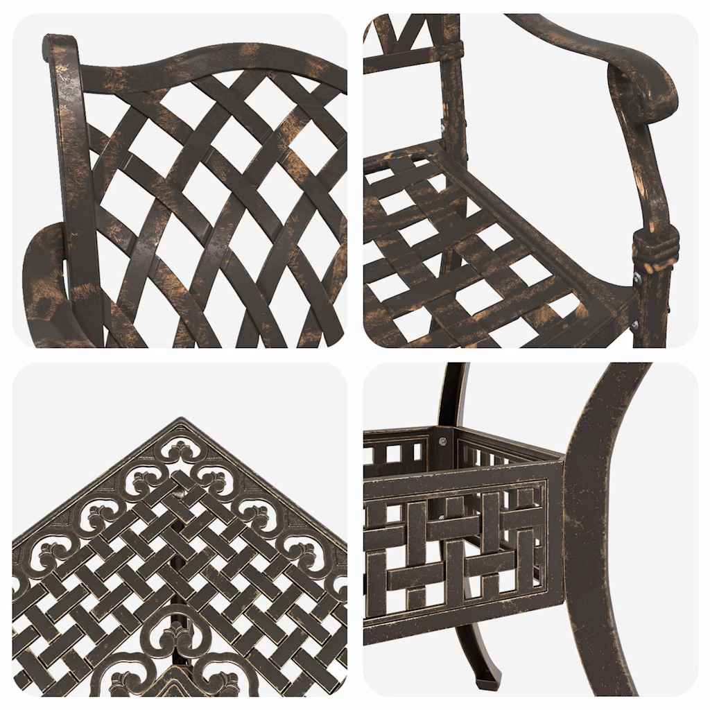 Ta tradicionalna vrtna miza in stoli oddajajo klasičen vibe, ki vaši zunanji prostor prinaša eleganco. S svojimi dimenzijami 80 x 80 x 75 cm so idealni za pogovore v vrtu ali na terasi. Če vam je ljubša tradicionalna estetika, boste oboževali njen teksturiran videz, ki nudi prijeten in topel občutek. Spremenite svoj vrt v udoben pobeg, idealen za ustvarjanje posebnih spominov s prijatelji in družino na svežem zraku. Kakovostni materiali: Ta vrtna miza in stoli iz litega aluminija imajo robustno, teksturirano površino, ki je prijetna na dotik. Aluminijasta konstrukcija je trpežna, ta set pa bo dolgo izgledal super v vašem vrtu. Vsestranski elementi: Vsak del, od udobnih stolov do trdne mize, je zasnovan iz aluminija, kar pomeni, da se vse lepo ujema in traja dolgo. Ne glede na to, ali prirejate poletno zabavo ali se preprosto sproščate ob skodelici čaja, vsak del prispeva k privlačnosti vašega zunanjega prostora. Funkcionalna zasnova: S svojim tradicionalnim slogom in klasičnimi detajli vas set vabi, da uživate v mirnih jutrih ali živahnih večerjah na prostem. Enostavna je za postaviti, kar jo naredi pametno izbiro za vsak balkon, ki združuje videz in funkcionalnost za vaš čas sprostitve in druženja. Priporočena uporaba: Super za vrtove in terase, ta set je v svojem elementu spomladi in poleti. Njena tradicionalna zasnova pomeni, da je dovolj vsestranska za vse, od družinskih večerij do mirnega dela v naravi. Navodila za nego: Da ga ohranite v dobri formi, ga pokrijte, ko ga ne uporabljate, in občasno obrišite z vlažno krpo. Ti preprosti koraki bodo pomagali, da ostane svež in pripravljen na vse vreme.