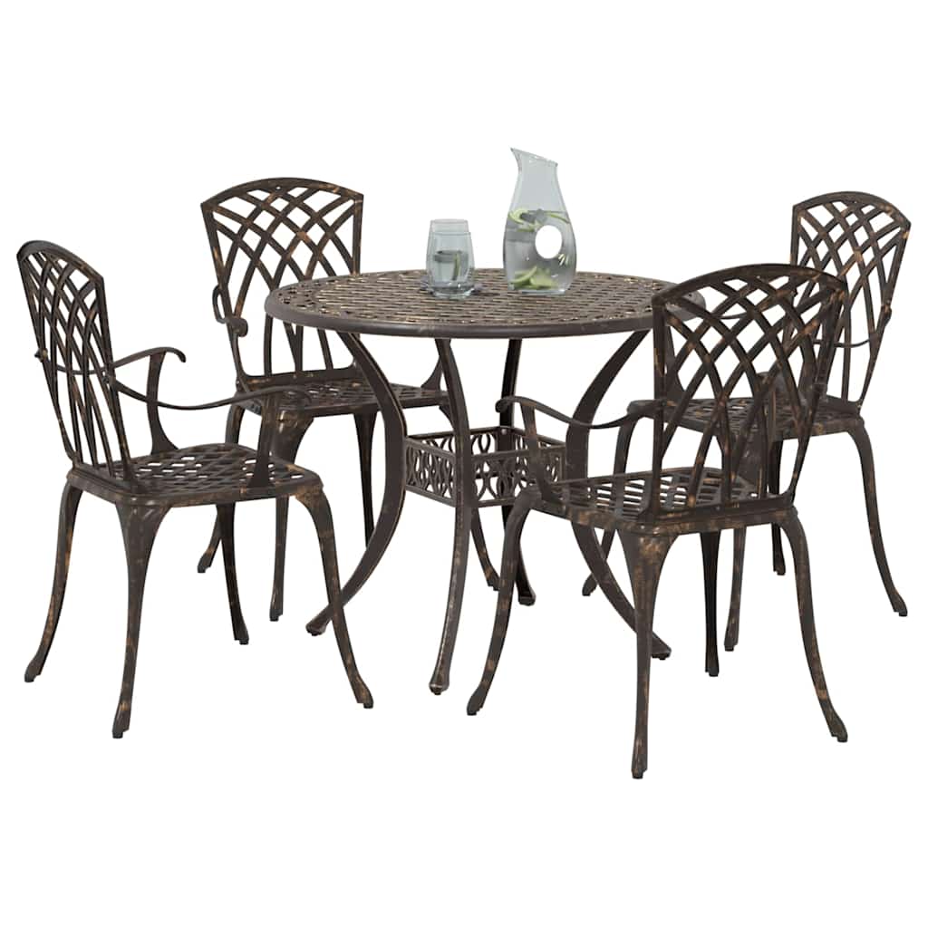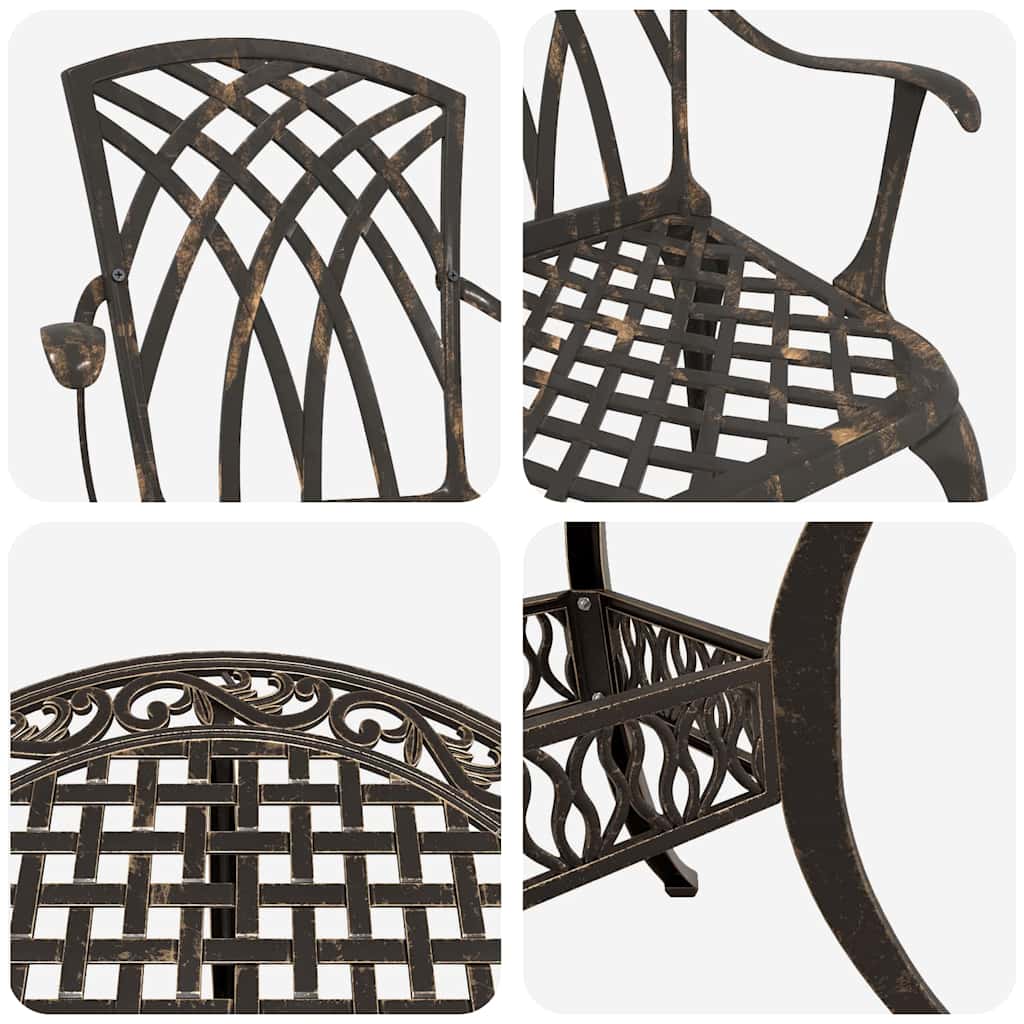 Ta jedilni set iz litega aluminija je res odlična izbira za vsako zunanjo okolje. S svojim klasičnim in tradicionalnim stilom se enostavno ujema z različnimi zunanjimi temami ter prinaša eleganco in funkcionalnost pri vsaki uporabi. Aluminijasta konstrukcija ne samo, da izboljšuje njegov videz, temveč tudi jamči odpornost. Prilagojen je za užitek v toplih dneh in se lahko prilagodi vsakemu neformalnemu ali formalnemu zunanjemu jedilnemu izkustvu – idealen je torej za vse, ki uživate v druženju na prostem. Popolnoma aluminijasta konstrukcija Jedilni set je v celoti izdelan iz aluminija, ki je znan po svoji trdnosti in odpornosti na vreme. To zagotavlja, da bo set ostal trden nakup za vsak vrt ali teraso ter je enostaven za vzdrževanje. Aluminij ohranja svoj videz in funkcionalnost tudi pri redni izpostavljenosti vremenskim vplivom. Tradicionalni stil Elegantna zasnova s klasičnimi detajli daje temu setu brezčasno privlačnost, ki se ujema z različnimi zunanjimi nastavitvami. Vsaka komponenta je zasnovana tako, da ponudi luksuzni videz v kombinaciji z praktičnostjo, kar ga naredi ne le začetnik pogovorov, temveč tudi vabo za srečanja. Prilagojeni ravni nasloni za roke Aluminijasti nasloni za roke so zasnovani z elegantno obliko, ki nudi udobje in ohranja estetsko celovitost seta. Ti nasloni zagotavljajo udobno izkušnjo, kar naredi dolge obroke na prostem prav prijetne. Praktična sestava Set se preprosto sestavi s pomočjo dveh oseb in izvijača. Ta hitra in enostavna sestava omogoča, da hitro pripravite svoj vrt ali teraso za gostovanje, kar vam daje več časa za užitek. Navodila za nego Vzdrževanje jedilne garniture je enostavno. Priporočamo, da jo pokrijete, ko ni v uporabi, da podaljšate življenjsko dobo. Redno obrišite z vlažno krpo, da ostane privlačna in funkcionalna del vaše zunanje površine.