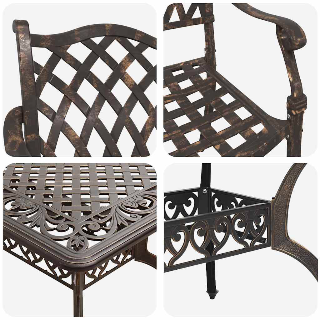 Aluminijasti jedilni set je odličen za zunanjo uporabo, saj povezuje tradicionalno zasnovo s praktičnostjo. Idealno je za poletna in pomladna druženja, saj prinaša klasičen stil na vsak vrt ali teraso. Prostorna pravokotna miza udobno sprejme do šest oseb, kar je super za vsakodnevne obroke ali posebne priložnosti. Vzdržljivost: Aluminijasti jedilni set je zanesljiv in se ponaša z dolgo življenjsko dobo. Odpornost na praske pomeni, da prenese vsakodnevno uporabo in trde pogoje, zagotavljajoč dolga leta užitka brez kompromisov. Brezčasna konstrukcija: Z brezprosojno površino je ta set zasnovan za zunanjo uporabo. Aluminij preprečuje propad in zagotavlja, da pohištvo ostaja trdno in privlačno skozi vse letne čase. Popolna rešitev za sedenje: Set vključuje udoben naslon, kar omogoča dolga in sproščena obedovanja. Oblika ročk je preprosta in elegantna, kar izboljša splošni občutek tradicionalnosti. Enostavna sestava: Set je zasnovan za ljubitelje D.I.Y., zahteva le malo truda in izvijač. Dve osebi lahko hitro sestavi, kar je enostavno in dostopno. Praktični nasveti za nego: Za ohranjanje seta v dobrem stanju uporabite prevleko, ko ni v uporabi, in ga enostavno obrišite z vlažno krpo. Te enostavne skrbi poskrbijo, da postane set zanesljiv del vašega zunanjega prostora za dolga leta.