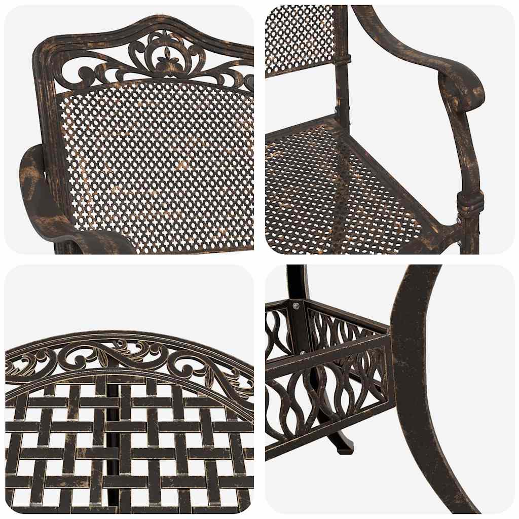Ta jedilni set iz litega aluminija je res odlična izbira za vsako zunanjo okolje. S svojim klasičnim in tradicionalnim stilom se enostavno ujema z različnimi zunanjimi temami ter prinaša eleganco in funkcionalnost pri vsaki uporabi. Aluminijasta konstrukcija ne samo, da izboljšuje njegov videz, temveč tudi jamči odpornost. Prilagojen je za užitek v toplih dneh in se lahko prilagodi vsakemu neformalnemu ali formalnemu zunanjemu jedilnemu izkustvu – idealen je torej za vse, ki uživate v druženju na prostem. Popolnoma aluminijasta konstrukcija Jedilni set je v celoti izdelan iz aluminija, ki je znan po svoji trdnosti in odpornosti na vreme. To zagotavlja, da bo set ostal trden nakup za vsak vrt ali teraso ter je enostaven za vzdrževanje. Aluminij ohranja svoj videz in funkcionalnost tudi pri redni izpostavljenosti vremenskim vplivom. Tradicionalni stil Elegantna zasnova s klasičnimi detajli daje temu setu brezčasno privlačnost, ki se ujema z različnimi zunanjimi nastavitvami. Vsaka komponenta je zasnovana tako, da ponudi luksuzni videz v kombinaciji z praktičnostjo, kar ga naredi ne le začetnik pogovorov, temveč tudi vabo za srečanja. Prilagojeni ravni nasloni za roke Aluminijasti nasloni za roke so zasnovani z elegantno obliko, ki nudi udobje in ohranja estetsko celovitost seta. Ti nasloni zagotavljajo udobno izkušnjo, kar naredi dolge obroke na prostem prav prijetne. Praktična sestava Set se preprosto sestavi s pomočjo dveh oseb in izvijača. Ta hitra in enostavna sestava omogoča, da hitro pripravite svoj vrt ali teraso za gostovanje, kar vam daje več časa za užitek. Navodila za nego Vzdrževanje jedilne garniture je enostavno. Priporočamo, da jo pokrijete, ko ni v uporabi, da podaljšate življenjsko dobo. Redno obrišite z vlažno krpo, da ostane privlačna in funkcionalna del vaše zunanje površine.