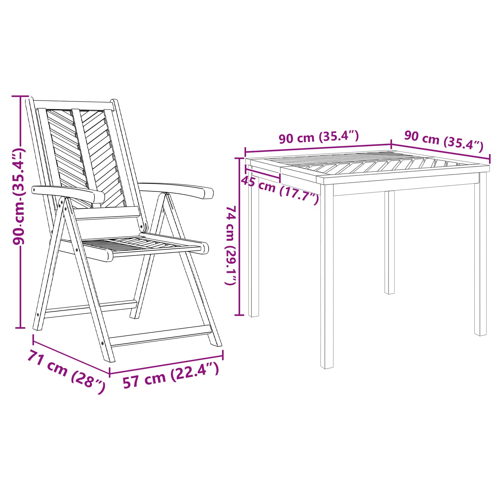 • 4 x Ležeči stol: 72 x 57 x 109 cm (D x Š x V)