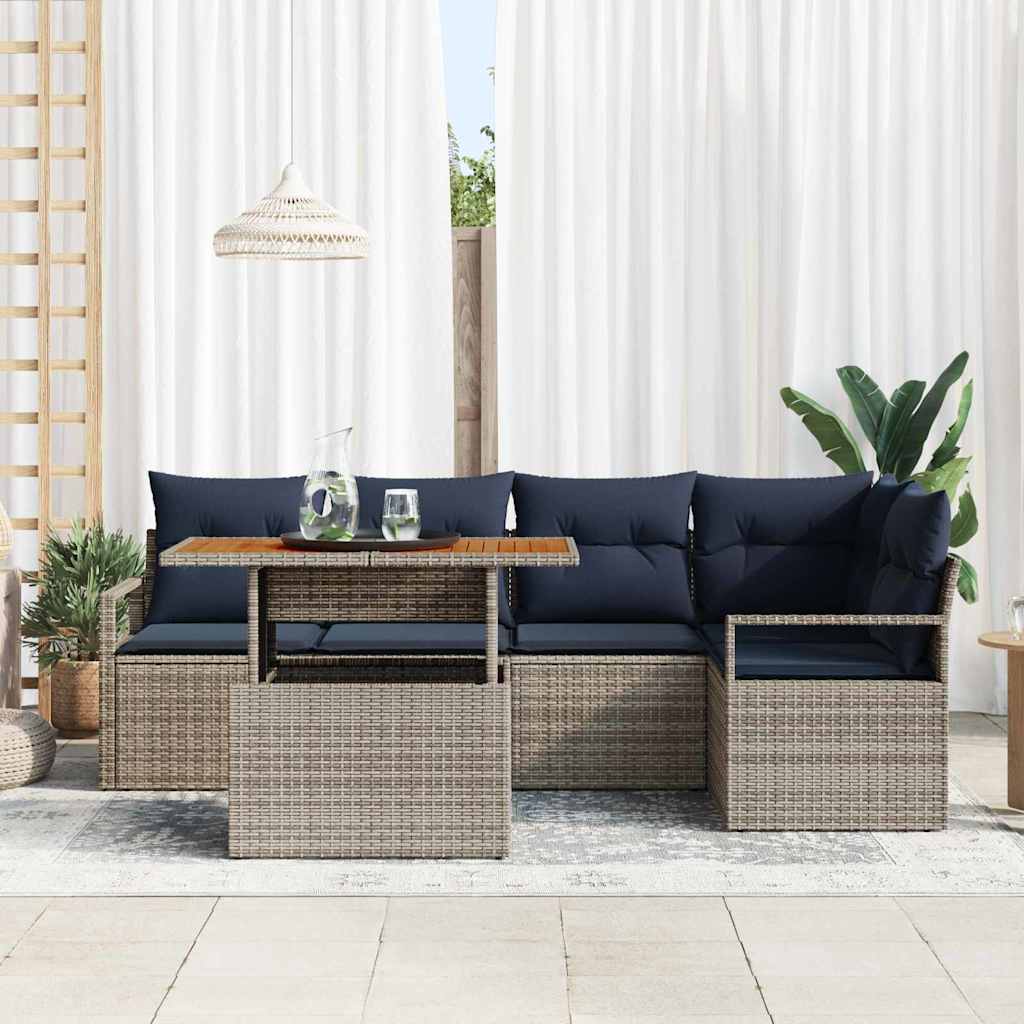 Ta izvrstni Poly Ratan Vrtni Jedilni Set brez težav združuje stilno zasnovo in funkcionalno vsestranskost, idealno za izboljšanje vaših zunanjih življenjskih prostorov. Pravokotna konfiguracija izžareva sodobno preprostost s čistimi linijami in minimalističnim videzom, ki brez težav dopolnjuje vsak vrt ali teraso. Kot neopazno središče za druženja se ta jedilni set prilagaja različnim družbenim situacijam, učinkovito zadostuje intimnim družinskim obrokom ali večjim zunanjim zabavam. Ker je trpežen in odporen na vreme, zagotavlja dolgotrajen užitek spomladi in poleti. Visokokakovostni materiali: Izdelan iz vrhunskega Poli Ratan, znanega po svoji UV odpornosti, zagotavlja vzdržljivost seta proti soncu in vremenu ter ponuja izpiljen naraven videz s svojo teksturo površine. Jeklo s prašnim premazom dodaja moč in stabilnost konstrukciji, kar je ključno za trajnost v zunanjem okolju. Integrirane rešitve za shranjevanje: Pametno zasnovani nasloni in sredinski sedeži vključujejo vgrajene shranjevalne prostore, ki vam omogočajo, da učinkovito organizirate in shranite blazine ali vrtnarske potrebščine. Ta funkcija je še posebej uporabna za ohranjanje urejenega zunanjega prostora, ki zagotavlja, da je vse, kar potrebujete, vedno na dosegu roke. Funkcionalni oblikovni elementi: Set vključuje modularne sposobnosti, ki omogočajo različne konfiguracije, prilagojene različnim druženjem ali prostorskim potrebam. Nastavljive noge povečujejo stabilnost na neravnih površinah, ohranjajo udobje in uporabnost z minimalnim naporom. Oblikovanje vključuje privlačno akacijevo mizo in ergonomske komponente, kot so nasloni za roke, ki lahko ustvarijo sproščen socialen prostor. Priporočena uporaba na prostem: Popolnoma primeren za terase, balkone in vrtove, ta jedilni set preoblikuje vašo zunanjo površino v prijetno in stilsko zatočišče za jedi, zabave ali preprosto sprostitev s družino in prijatelji. Njegov estetski eleganten videz in praktična zasnova omogočata vsestranskost v različnih nastavitvah in uporabah. Brezskrbna nega in vzdrževanje: Dosledno kakovostno nego vključuje uporabo vodoodpornega pokrova za zaščito seta, ko ga ne uporabljate, kar zagotavlja dolgotrajno uporabo. Odpornost materialov dela čiščenje enostavno; preprosto obrišite z vlažno krpo, da ohranite svetlost. Pravilna nega podaljšuje njegov vizualni privlačnost in zanesljivost delovanja.