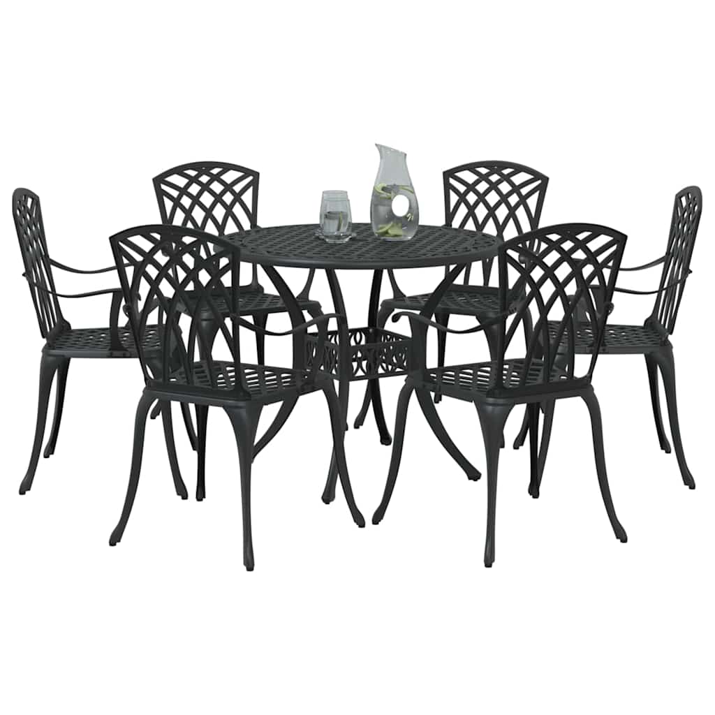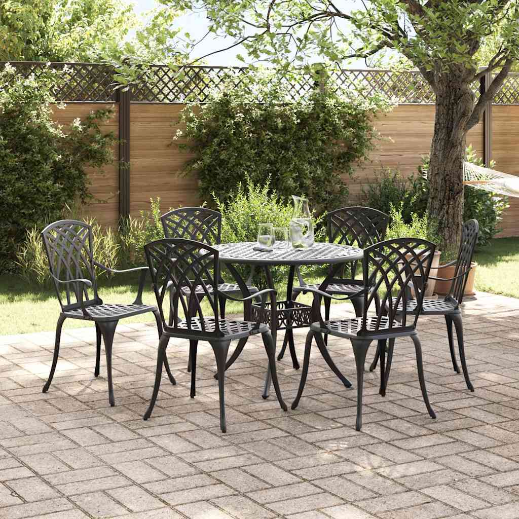 Ta jedilni set iz litega aluminija je res odlična izbira za vsako zunanjo okolje. S svojim klasičnim in tradicionalnim stilom se enostavno ujema z različnimi zunanjimi temami ter prinaša eleganco in funkcionalnost pri vsaki uporabi. Aluminijasta konstrukcija ne samo, da izboljšuje njegov videz, temveč tudi jamči odpornost. Prilagojen je za užitek v toplih dneh in se lahko prilagodi vsakemu neformalnemu ali formalnemu zunanjemu jedilnemu izkustvu – idealen je torej za vse, ki uživate v druženju na prostem. Popolnoma aluminijasta konstrukcija Jedilni set je v celoti izdelan iz aluminija, ki je znan po svoji trdnosti in odpornosti na vreme. To zagotavlja, da bo set ostal trden nakup za vsak vrt ali teraso ter je enostaven za vzdrževanje. Aluminij ohranja svoj videz in funkcionalnost tudi pri redni izpostavljenosti vremenskim vplivom. Tradicionalni stil Elegantna zasnova s klasičnimi detajli daje temu setu brezčasno privlačnost, ki se ujema z različnimi zunanjimi nastavitvami. Vsaka komponenta je zasnovana tako, da ponudi luksuzni videz v kombinaciji z praktičnostjo, kar ga naredi ne le začetnik pogovorov, temveč tudi vabo za srečanja. Prilagojeni ravni nasloni za roke Aluminijasti nasloni za roke so zasnovani z elegantno obliko, ki nudi udobje in ohranja estetsko celovitost seta. Ti nasloni zagotavljajo udobno izkušnjo, kar naredi dolge obroke na prostem prav prijetne. Praktična sestava Set se preprosto sestavi s pomočjo dveh oseb in izvijača. Ta hitra in enostavna sestava omogoča, da hitro pripravite svoj vrt ali teraso za gostovanje, kar vam daje več časa za užitek. Navodila za nego Vzdrževanje jedilne garniture je enostavno. Priporočamo, da jo pokrijete, ko ni v uporabi, da podaljšate življenjsko dobo. Redno obrišite z vlažno krpo, da ostane privlačna in funkcionalna del vaše zunanje površine.
