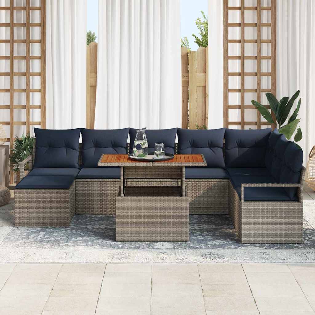 Ta komplet jedilnice iz poli ratana ponuja eleganten in prilagodljiv sedežni prostor za zunanje prostore. S modularnim dizajnom lahko ta komplet preuredite, da ustreza različnim postavitvam, kar omogoča bolj prilagojene sedežne aranžmaje. Njegov sodoben stil in enostavno ravnanje ga naredijo za idealno izbiro za druženja ali sproščanje na terasi med poletjem in pomladjo. Kombinacija poli ratana, prašnega jekla in trdnega akacijevega lesa prinaša stilen, a funkcionalen videz, kar ga naredi za očarljiv osrednji kos. Modularen in prilagodljiv: Ta komplet jedilnice na prostem ima vsestranski dizajn, ki omogoča preureditev posameznih elementov v različne postavitve in nudi prilagojeno izkušnjo sedenja. Nastavljive noge ti omogočajo, da se prilagodiš variacijam terena, kar zagotavlja stabilno in ravno nastavitev ves čas. Ta možnost prilagajanja ne le povečuje udobje, ampak ga tudi čini odličnega v različnih zunanjih postavitvah in priložnostih. UV in vremensko odporen: Narejen iz visokokakovostnega poli ratana, je ta set zasnovan za obvladovanje močnega sonca brez bledenja. Njegova lastna UV-odpornost zagotavlja dolgotrajno trajnost in ohranjanje barve, kar mu daje večno privlačnost v tvojem vrtu. To lastnost dela komplekt praktično izbiro za poletje in pomlad, kar zagotavlja zanesljivo uporabo sezono za sezono. Trajna prašno premazana jeklena konstrukcija: Robustna prašno premazana jeklena konstrukcija tvori osnovo tega kompleta na prostem, kar ponuja moč in stabilnost. Njegova vremensko odporna površina zagotavlja, da ostane lepo in nepoškodovano tudi ob rji, dežju ali drugih vremenskih plovbah, kar ohranja njegov izgled in funkcijo skozi čas. To zagotavlja, da je tvoj investicijski kos pohištva zaščiten in užite lahko dlje časa. Površina iz akacijevega lesa: Trden akacijev les, ki služi kot površina mize, dodaja naravno eleganco kompletu. Znano po svoji trdnosti in privlačni teksturi, akacijev les nudi trdno in privlačno površino, ki je enostavna za čiščenje in vzdrževanje. To povečuje funkcionalnost in estetsko vrednost jedilnega kompleta, ustvarja pa tudi toplo in vabljivo vzdušje. Enostavno vzdrževanje: Zaščiti svoj investicijski kos s preprostim ravnanjem. Uporabi prevleke za zunanjo pohištvo, ko ni v uporabi, da ga ohraniš v prvotnem stanju. Čiščenje je enostavno s suho metodo, izogibaj se močnim kemikalijam, ki bi lahko poškodovale površino. Takšno minimalno vzdrževanje zagotavlja, da tvoj jedilni set ostane vabič in udoben za dolga leta uživanja na prostem.