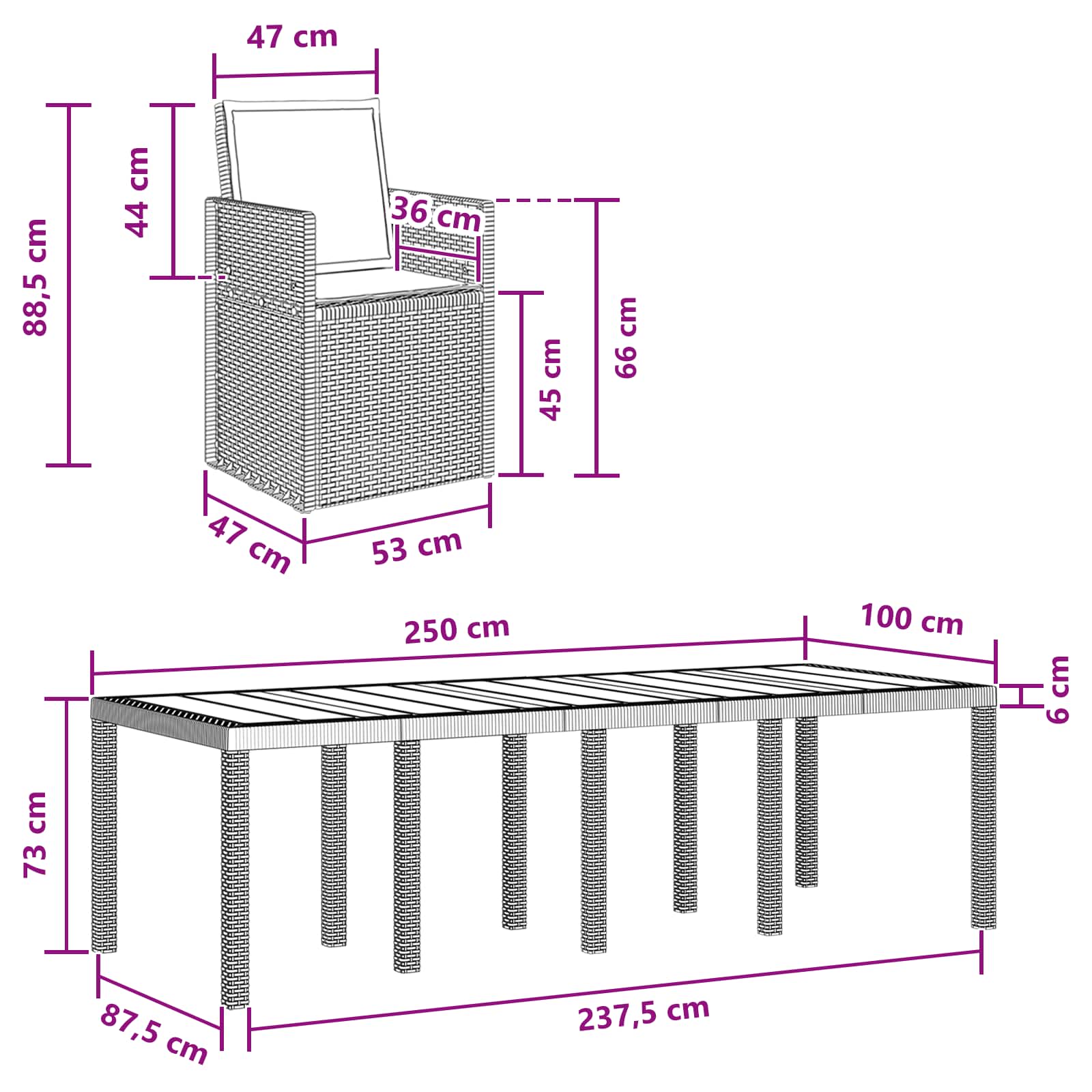 Ta zunanji jedilni set vključuje praktično zasnovo in funkcionalnost za vse zunanje prostore. Je trpežen in primeren za vsakodnevno uporabo na terasah, dvoriščih ali vrtovih. Čist dizajn omogoča enostavno vključitev v različna okolja. Je uravnotežena rešitev za jedilnico, sedenje in zunanje aktivnosti. Stabilna konstrukcija: Miza in stoli so narejeni iz polipropilena, kar ponuja stabilnost in zanesljivost za redno zunanjo uporabo. Z odpornostjo na vreme in UV žarke, je set zasnovan za dolgotrajno uporabo. Udobno sedenje: Blazine s peno nudijo lahkotno in stabilno podporo pri sedenju. Ta pena omogoča prijetno blaženje, kar izboljšuje udobje. Mehanizem zložljivega naslonjala: Enostavno zlaganje naslonjala je super za varčevanje s prostorom, stoli se lahko potisnejo pod mizo, ko jih ne potrebujemo. Ta dizajn omogoča urejen prostor na prostem. Vsakršna uporaba: Ta jedilni set je prilagodljiv za različne priložnosti, primeren za terase, vrtove ali dvorišča. Nudi praktične rešitve za obroke in druženja na prostem. Enostavna sestava in vzdrževanje: Set se hitro sestavi z osnovnim orodjem. Redno čiščenje je enostavno z vlažno krpo in ohranja komplet v dobrem stanju skozi čas.