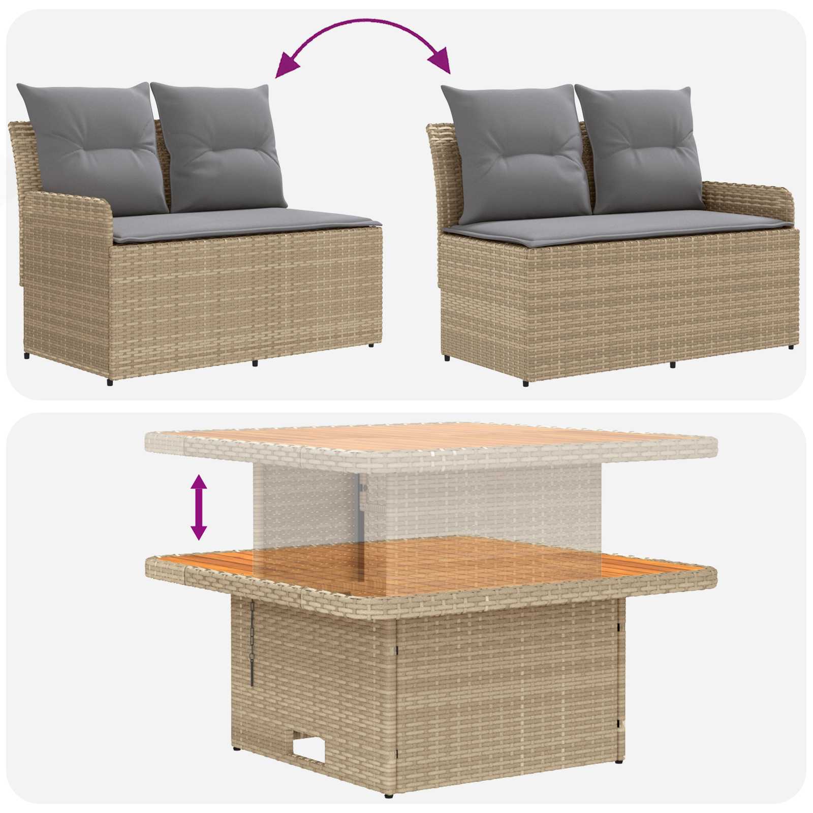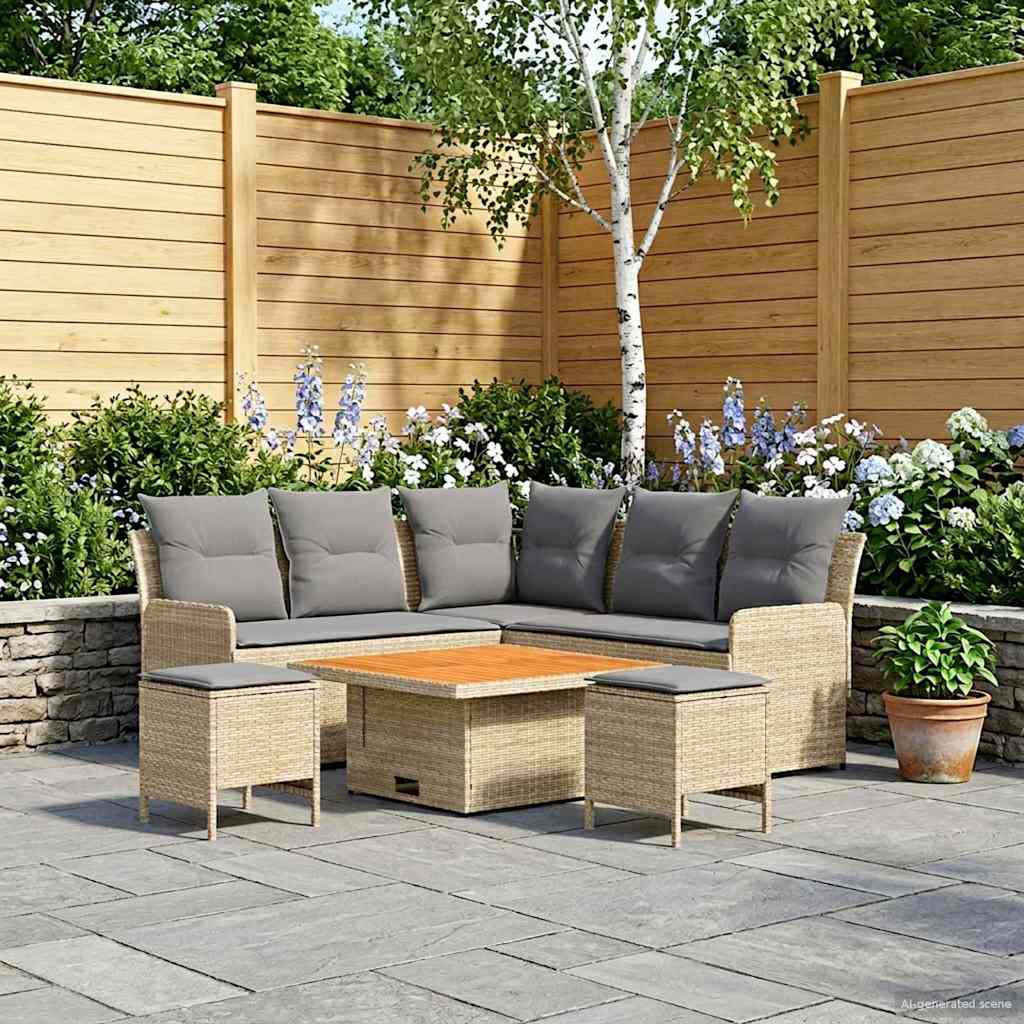 Ta moderni pohištveni set je zasnovan za notranje in zunanje prostore. S preprostim in funkcionalnim dizajnom ponuja čiste linije in minimalne okraske, kar povečuje njegovo privlačnost. Narejen je iz PE ratana in akacijevega lesa, kar prinaša sodoben občutek v vsak prostor, idealen za preživljanje prostega časa s prijatelji in družino. Na terasi ali v prijetni dnevni sobi lepo dopolnjuje različne sloge, nudi pa tudi trajnost in stil. Topli rjavi tone in mehke blazine ustvarjajo sproščujoče okolje za uživanje. Materiali: Ta set iz PE ratana se ponaša s estetskim videzom in je odporen na vremenske vplive. PE ratan je trpežen in preživi UV žarke ter vlago, kar izboljša njegovo življenjsko dobo. Okvir iz prašno lakiranega jekla nudi zanesljivo podporo in ohranja lahkotno zasnovo, primerno za različne postavitve. Vključene komponente: Udobne blazine z odstranljivimi pokrovčki omogočajo enostavno vzdrževanje. Pena in poliestrska vlakna zagotavljajo dolgotrajno udobje. Odstranljive blazine z zadrgami nudijo enostavno čiščenje, videz blazin pa pripomore k sproščujočem vzdušju. Funkcije / oblikovanje: Nastavljive noge omogočajo enostavno prilagojevanje neenakemu terenu, kar zagotavlja stabilnost kjerkoli. Ta praktična funkcija povečuje vsestranskost seta, kar omogoča uporabnost v različnih okoljih. Priporočena uporaba: Primerno za terase, deke, vrtove ali notranje bivalne prostore, ta set je prilagodljiv različnim okoljem. Njegov sodoben videz in nevtralne barve se ujemajo z obstoječim pohištvom. Vzdrževanje: Čistiti ga je treba z suho krpo in se izogibati ostrim kemikalijam. Uporaba vodoodpornega pokrova, ko set ni v uporabi, podaljša njegovo življenjsko dobo, še posebej med slabim vremenom.
