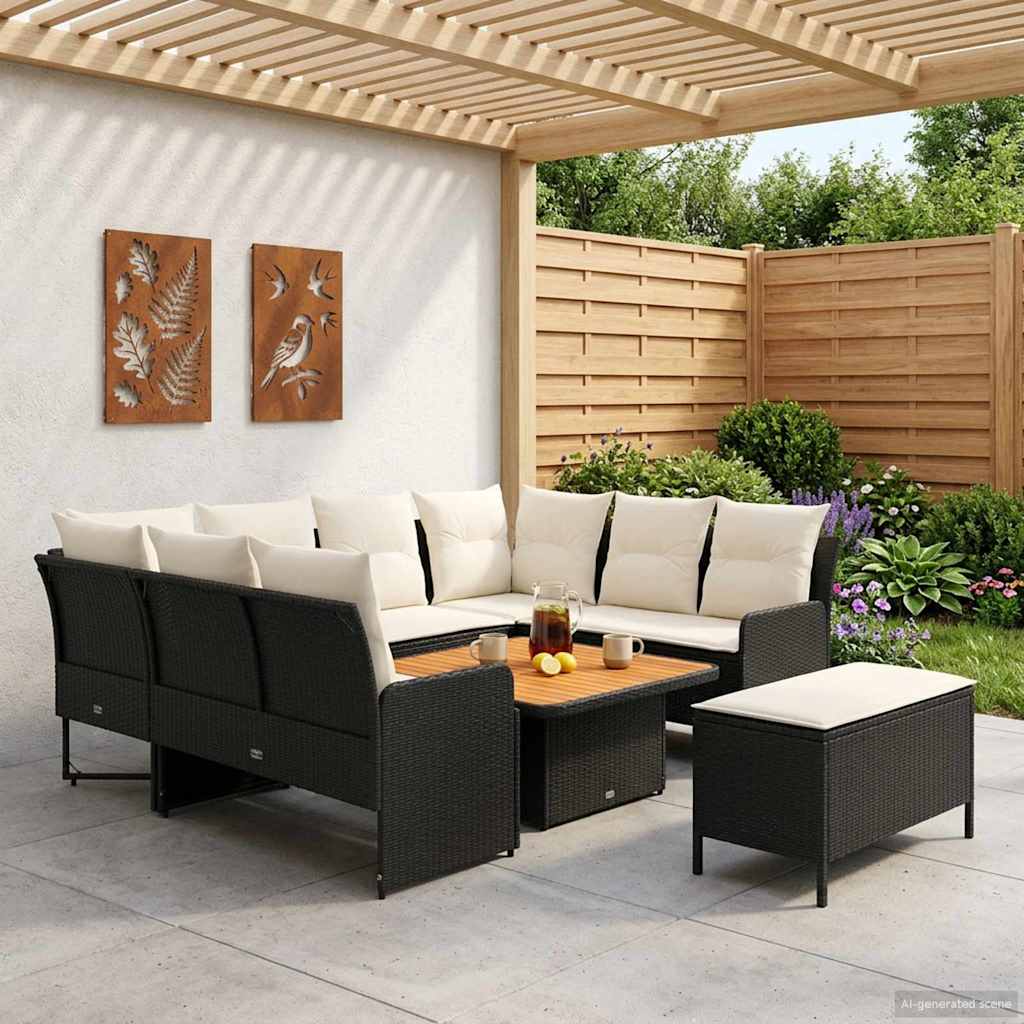 Ta moderni pohištveni set je zasnovan za notranje in zunanje prostore. S preprostim in funkcionalnim dizajnom ponuja čiste linije in minimalne okraske, kar povečuje njegovo privlačnost. Narejen je iz PE ratana in akacijevega lesa, kar prinaša sodoben občutek v vsak prostor, idealen za preživljanje prostega časa s prijatelji in družino. Na terasi ali v prijetni dnevni sobi lepo dopolnjuje različne sloge, nudi pa tudi trajnost in stil. Topli rjavi tone in mehke blazine ustvarjajo sproščujoče okolje za uživanje. Materiali: Ta set iz PE ratana se ponaša s estetskim videzom in je odporen na vremenske vplive. PE ratan je trpežen in preživi UV žarke ter vlago, kar izboljša njegovo življenjsko dobo. Okvir iz prašno lakiranega jekla nudi zanesljivo podporo in ohranja lahkotno zasnovo, primerno za različne postavitve. Vključene komponente: Udobne blazine z odstranljivimi pokrovčki omogočajo enostavno vzdrževanje. Pena in poliestrska vlakna zagotavljajo dolgotrajno udobje. Odstranljive blazine z zadrgami nudijo enostavno čiščenje, videz blazin pa pripomore k sproščujočem vzdušju. Funkcije / oblikovanje: Nastavljive noge omogočajo enostavno prilagojevanje neenakemu terenu, kar zagotavlja stabilnost kjerkoli. Ta praktična funkcija povečuje vsestranskost seta, kar omogoča uporabnost v različnih okoljih. Priporočena uporaba: Primerno za terase, deke, vrtove ali notranje bivalne prostore, ta set je prilagodljiv različnim okoljem. Njegov sodoben videz in nevtralne barve se ujemajo z obstoječim pohištvom. Vzdrževanje: Čistiti ga je treba z suho krpo in se izogibati ostrim kemikalijam. Uporaba vodoodpornega pokrova, ko set ni v uporabi, podaljša njegovo življenjsko dobo, še posebej med slabim vremenom.