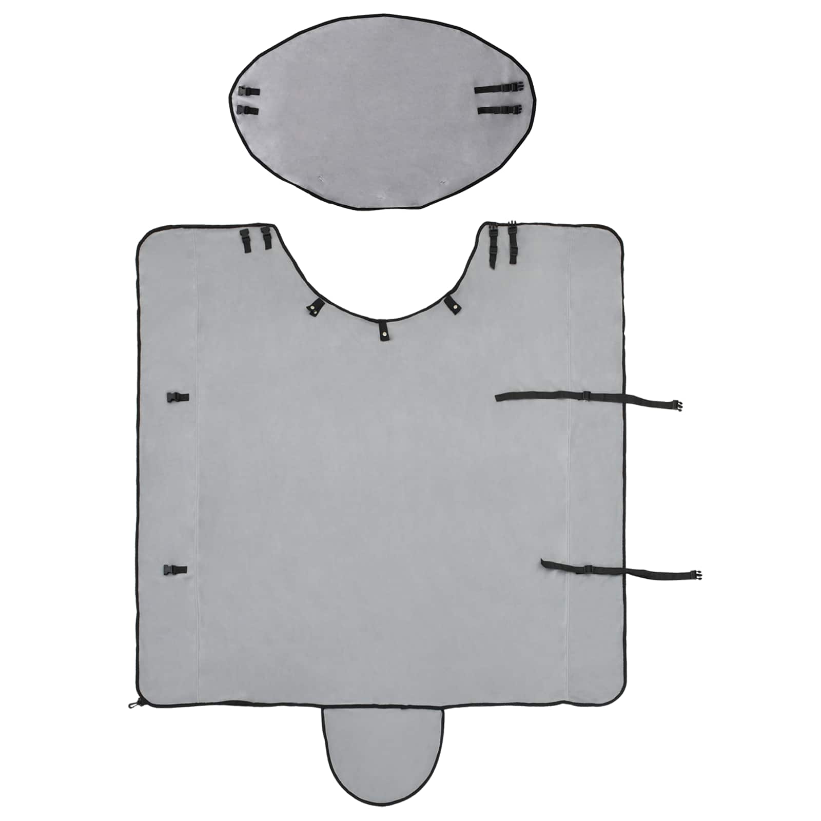 Ta odeja za konje kombinira moderni slog in praktičnost, da vašemu konju zagotovi toploto in udobje pozimi. Narejena iz trpežnega poliestra s sladko žametno teksturo, prinaša kanček luksuza. S preprostim in stilskim dizajnom je namenjena izključno zunanji uporabi, kar zagotavlja, da vaš konj uživa v naravi brez neprijetnosti. Njena tesna prileganje je idealna za ohranjanje konjev v udobju, kar jo dela super dodatek za zimski garderobi. Podrobnosti o materialu: Odeja je narejena iz poliestra, kar pomeni, da je zelo trpežna in odporna na vremenske vplive. Žametna tekstura ne samo, da daje luksuzni občutek, ampak nudi tudi udobje vašemu konju in zagotavlja toploto brez draženja. Odstranljiva prevleka: Funkcija snemljive prevleke omogoča super enostavno čiščenje. Preprosto jo odstranite in operite v pralnem stroju pri 30 stopinjah — hitra rešitev za ohranjanje čistoče in dolgoživost odeje. Prilagodljive lastnosti: Odeja ima snemljive dele, tako da jo lahko prilagodite glede na velikost vašega konja. Ta funkcionalnost zagotavlja, da odeja dobro prilega in preprečuje vdor hladnega zraka. Zimska nujnost: Specifično zasnovana za zimsko uporabo, ta odeja ohranja konje tople tudi pri nizkih temperaturah, saj nudi odlično izolacijo. Enostavno vzdrževanje: Hvala trpežnemu materialu, ki ga lahko perete v pralnem stroju, in enostavnim odstranljivim komponentam, je skrb za to odejo enostavna, kar zagotavlja, da ostaja sveža in čista za zdravje in udobje vašega konja.