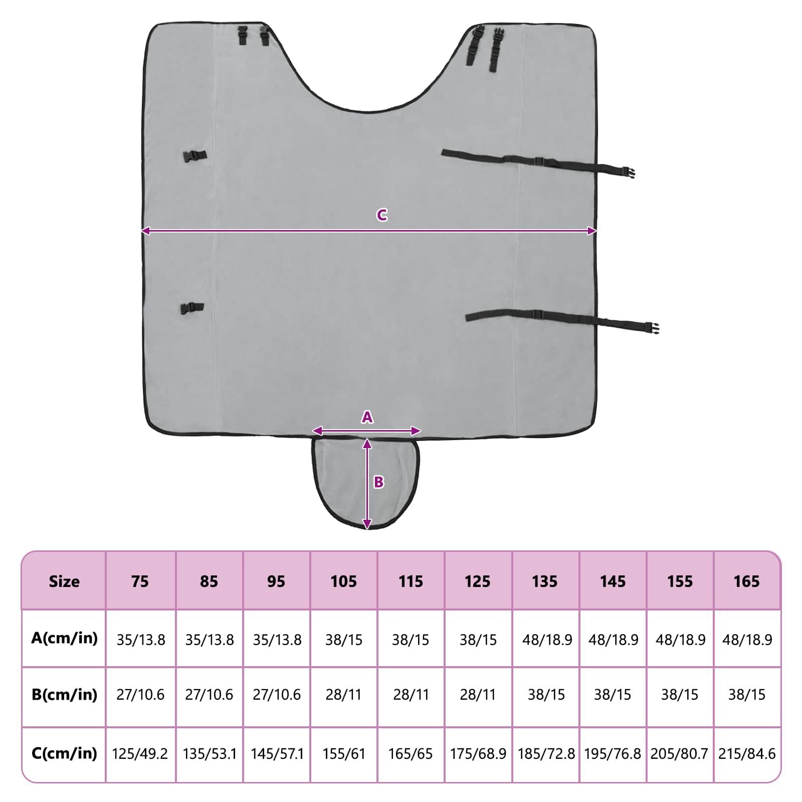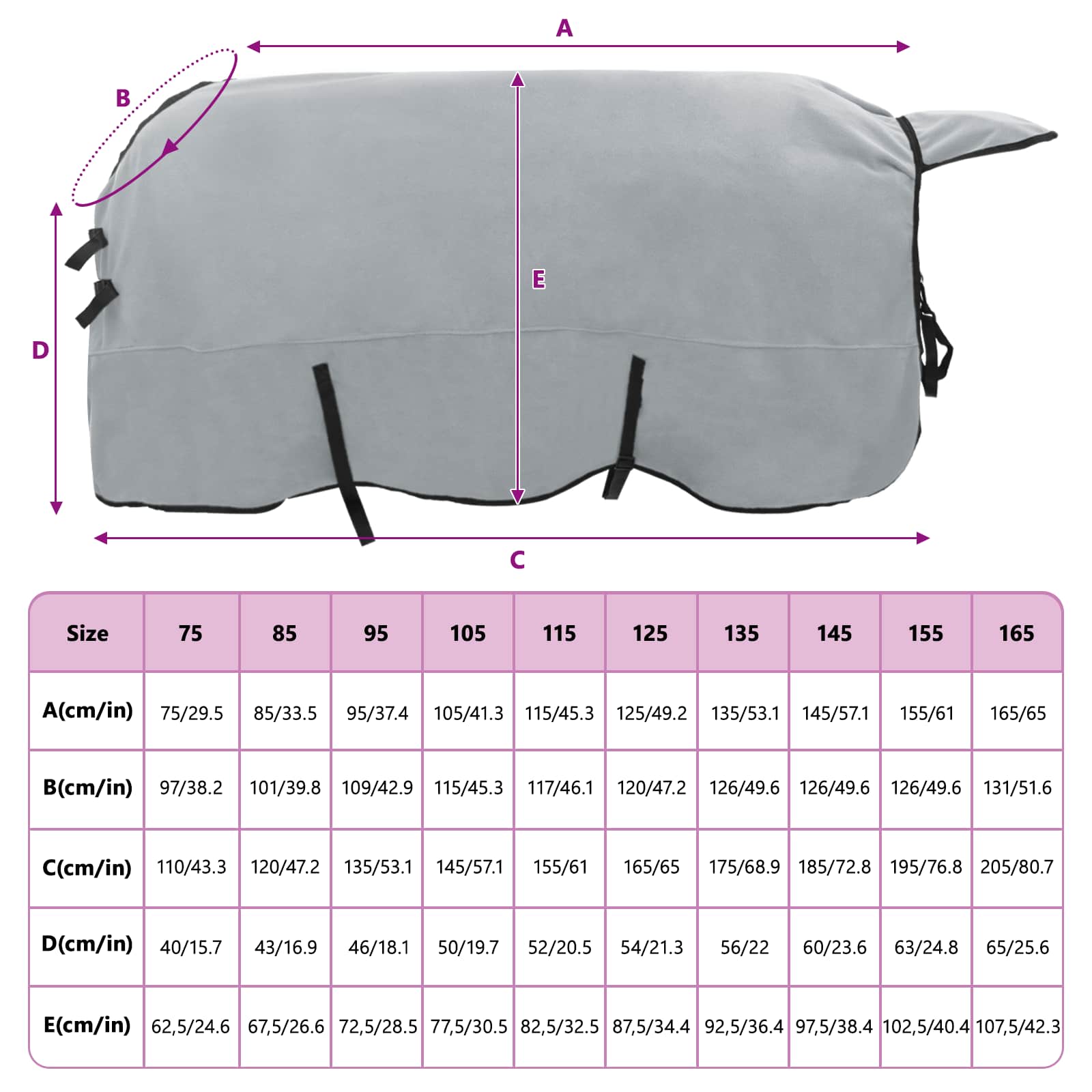 Ta odeja za konje kombinira moderni slog in praktičnost, da vašemu konju zagotovi toploto in udobje pozimi. Narejena iz trpežnega poliestra s sladko žametno teksturo, prinaša kanček luksuza. S preprostim in stilskim dizajnom je namenjena izključno zunanji uporabi, kar zagotavlja, da vaš konj uživa v naravi brez neprijetnosti. Njena tesna prileganje je idealna za ohranjanje konjev v udobju, kar jo dela super dodatek za zimski garderobi. Podrobnosti o materialu: Odeja je narejena iz poliestra, kar pomeni, da je zelo trpežna in odporna na vremenske vplive. Žametna tekstura ne samo, da daje luksuzni občutek, ampak nudi tudi udobje vašemu konju in zagotavlja toploto brez draženja. Odstranljiva prevleka: Funkcija snemljive prevleke omogoča super enostavno čiščenje. Preprosto jo odstranite in operite v pralnem stroju pri 30 stopinjah — hitra rešitev za ohranjanje čistoče in dolgoživost odeje. Prilagodljive lastnosti: Odeja ima snemljive dele, tako da jo lahko prilagodite glede na velikost vašega konja. Ta funkcionalnost zagotavlja, da odeja dobro prilega in preprečuje vdor hladnega zraka. Zimska nujnost: Specifično zasnovana za zimsko uporabo, ta odeja ohranja konje tople tudi pri nizkih temperaturah, saj nudi odlično izolacijo. Enostavno vzdrževanje: Hvala trpežnemu materialu, ki ga lahko perete v pralnem stroju, in enostavnim odstranljivim komponentam, je skrb za to odejo enostavna, kar zagotavlja, da ostaja sveža in čista za zdravje in udobje vašega konja.