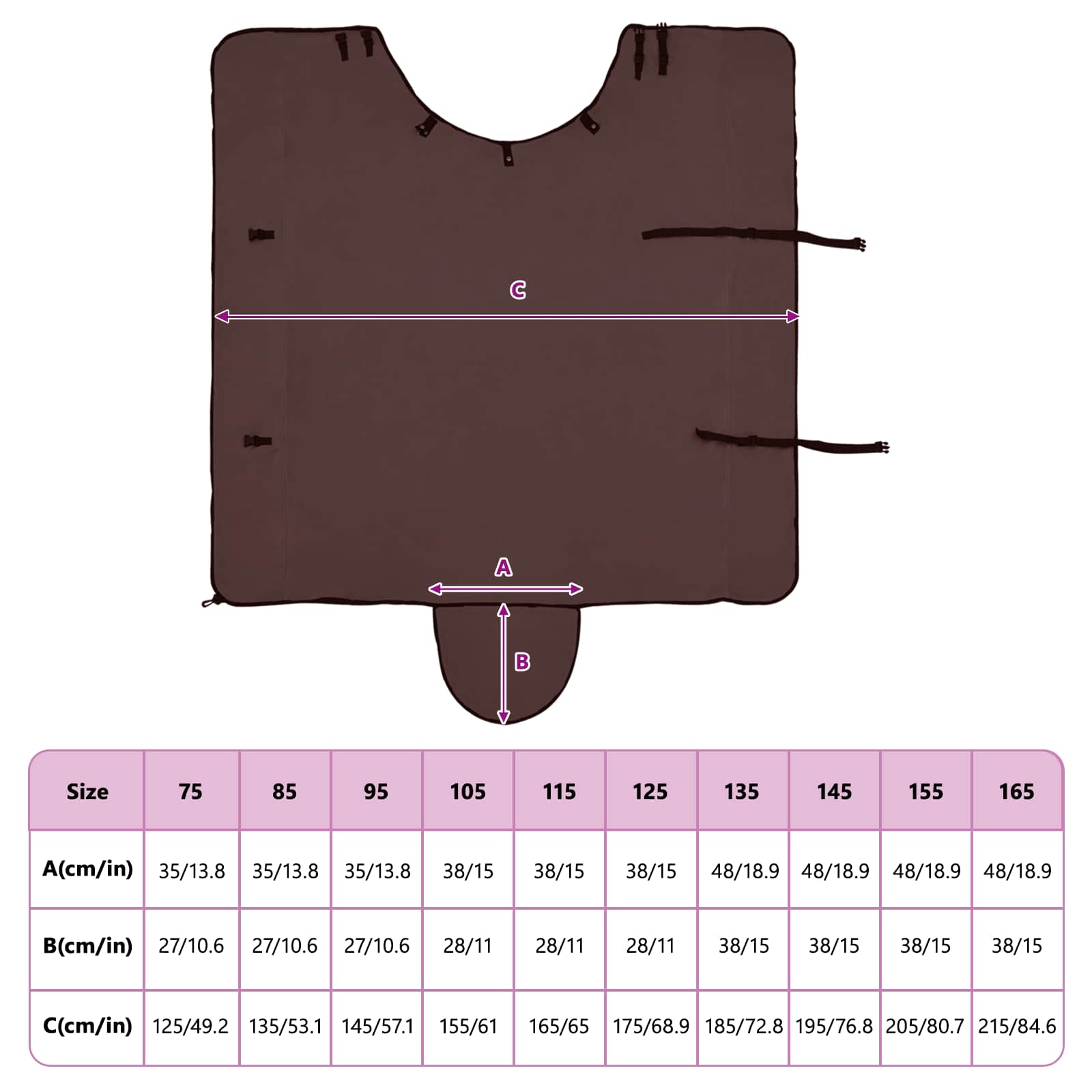 Ta odeja za konje kombinira moderni slog in praktičnost, da vašemu konju zagotovi toploto in udobje pozimi. Narejena iz trpežnega poliestra s sladko žametno teksturo, prinaša kanček luksuza. S preprostim in stilskim dizajnom je namenjena izključno zunanji uporabi, kar zagotavlja, da vaš konj uživa v naravi brez neprijetnosti. Njena tesna prileganje je idealna za ohranjanje konjev v udobju, kar jo dela super dodatek za zimski garderobi. Podrobnosti o materialu: Odeja je narejena iz poliestra, kar pomeni, da je zelo trpežna in odporna na vremenske vplive. Žametna tekstura ne samo, da daje luksuzni občutek, ampak nudi tudi udobje vašemu konju in zagotavlja toploto brez draženja. Odstranljiva prevleka: Funkcija snemljive prevleke omogoča super enostavno čiščenje. Preprosto jo odstranite in operite v pralnem stroju pri 30 stopinjah — hitra rešitev za ohranjanje čistoče in dolgoživost odeje. Prilagodljive lastnosti: Odeja ima snemljive dele, tako da jo lahko prilagodite glede na velikost vašega konja. Ta funkcionalnost zagotavlja, da odeja dobro prilega in preprečuje vdor hladnega zraka. Zimska nujnost: Specifično zasnovana za zimsko uporabo, ta odeja ohranja konje tople tudi pri nizkih temperaturah, saj nudi odlično izolacijo. Enostavno vzdrževanje: Hvala trpežnemu materialu, ki ga lahko perete v pralnem stroju, in enostavnim odstranljivim komponentam, je skrb za to odejo enostavna, kar zagotavlja, da ostaja sveža in čista za zdravje in udobje vašega konja.