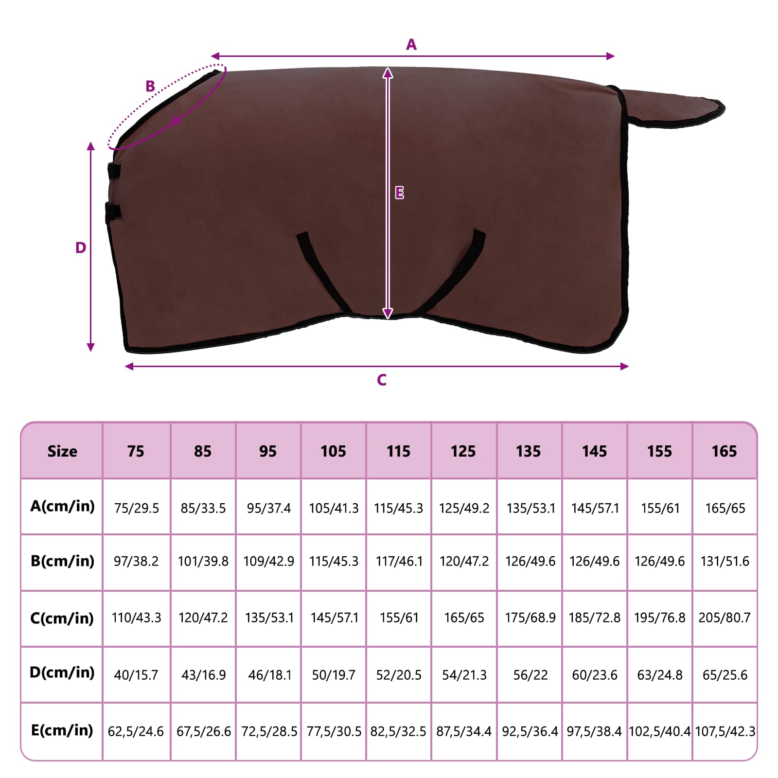 Ta odeja za konje kombinira moderni slog in praktičnost, da vašemu konju zagotovi toploto in udobje pozimi. Narejena iz trpežnega poliestra s sladko žametno teksturo, prinaša kanček luksuza. S preprostim in stilskim dizajnom je namenjena izključno zunanji uporabi, kar zagotavlja, da vaš konj uživa v naravi brez neprijetnosti. Njena tesna prileganje je idealna za ohranjanje konjev v udobju, kar jo dela super dodatek za zimski garderobi. Podrobnosti o materialu: Odeja je narejena iz poliestra, kar pomeni, da je zelo trpežna in odporna na vremenske vplive. Žametna tekstura ne samo, da daje luksuzni občutek, ampak nudi tudi udobje vašemu konju in zagotavlja toploto brez draženja. Odstranljiva prevleka: Funkcija snemljive prevleke omogoča super enostavno čiščenje. Preprosto jo odstranite in operite v pralnem stroju pri 30 stopinjah — hitra rešitev za ohranjanje čistoče in dolgoživost odeje. Prilagodljive lastnosti: Odeja ima snemljive dele, tako da jo lahko prilagodite glede na velikost vašega konja. Ta funkcionalnost zagotavlja, da odeja dobro prilega in preprečuje vdor hladnega zraka. Zimska nujnost: Specifično zasnovana za zimsko uporabo, ta odeja ohranja konje tople tudi pri nizkih temperaturah, saj nudi odlično izolacijo. Enostavno vzdrževanje: Hvala trpežnemu materialu, ki ga lahko perete v pralnem stroju, in enostavnim odstranljivim komponentam, je skrb za to odejo enostavna, kar zagotavlja, da ostaja sveža in čista za zdravje in udobje vašega konja.
