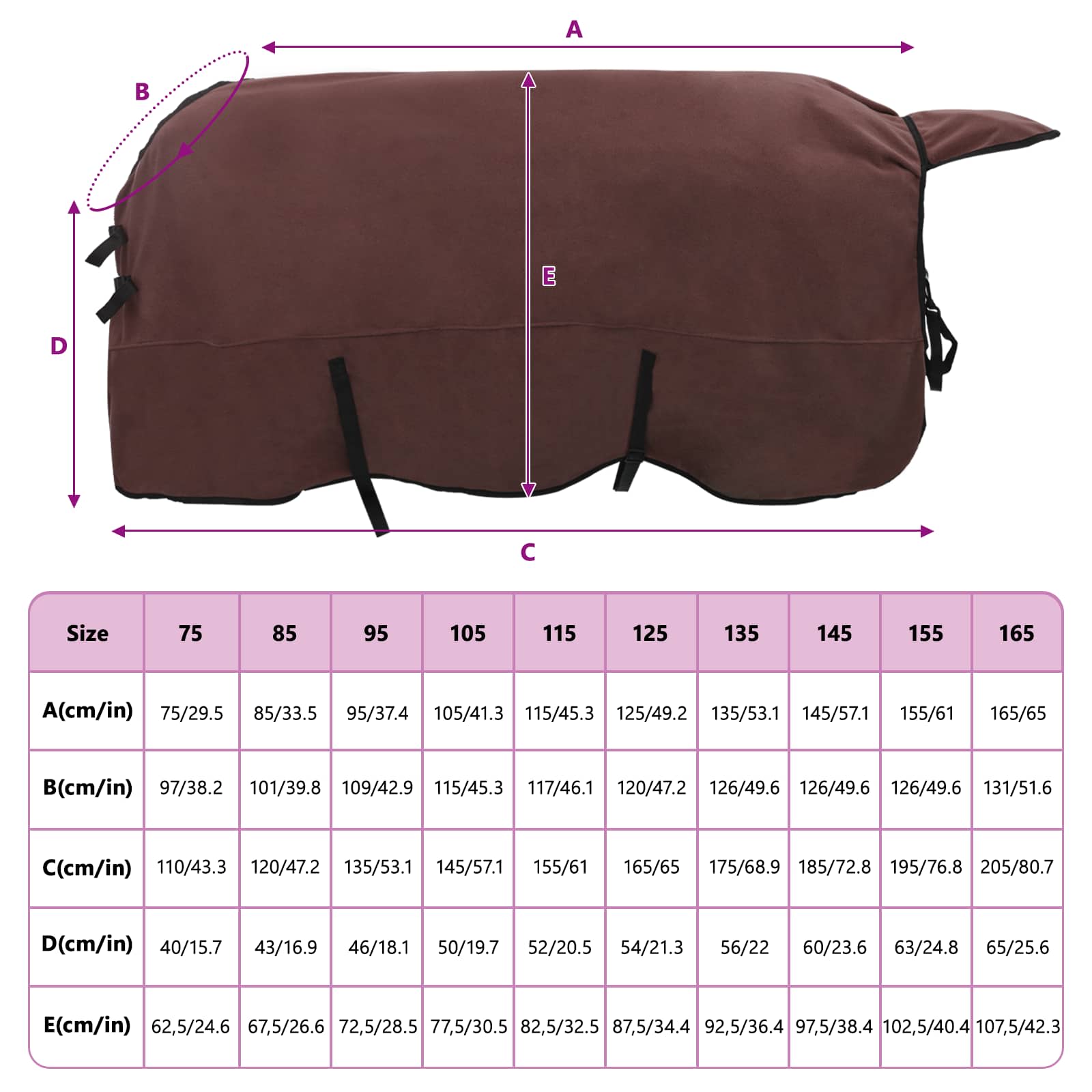 Ta odeja za konje kombinira moderni slog in praktičnost, da vašemu konju zagotovi toploto in udobje pozimi. Narejena iz trpežnega poliestra s sladko žametno teksturo, prinaša kanček luksuza. S preprostim in stilskim dizajnom je namenjena izključno zunanji uporabi, kar zagotavlja, da vaš konj uživa v naravi brez neprijetnosti. Njena tesna prileganje je idealna za ohranjanje konjev v udobju, kar jo dela super dodatek za zimski garderobi. Podrobnosti o materialu: Odeja je narejena iz poliestra, kar pomeni, da je zelo trpežna in odporna na vremenske vplive. Žametna tekstura ne samo, da daje luksuzni občutek, ampak nudi tudi udobje vašemu konju in zagotavlja toploto brez draženja. Odstranljiva prevleka: Funkcija snemljive prevleke omogoča super enostavno čiščenje. Preprosto jo odstranite in operite v pralnem stroju pri 30 stopinjah — hitra rešitev za ohranjanje čistoče in dolgoživost odeje. Prilagodljive lastnosti: Odeja ima snemljive dele, tako da jo lahko prilagodite glede na velikost vašega konja. Ta funkcionalnost zagotavlja, da odeja dobro prilega in preprečuje vdor hladnega zraka. Zimska nujnost: Specifično zasnovana za zimsko uporabo, ta odeja ohranja konje tople tudi pri nizkih temperaturah, saj nudi odlično izolacijo. Enostavno vzdrževanje: Hvala trpežnemu materialu, ki ga lahko perete v pralnem stroju, in enostavnim odstranljivim komponentam, je skrb za to odejo enostavna, kar zagotavlja, da ostaja sveža in čista za zdravje in udobje vašega konja.