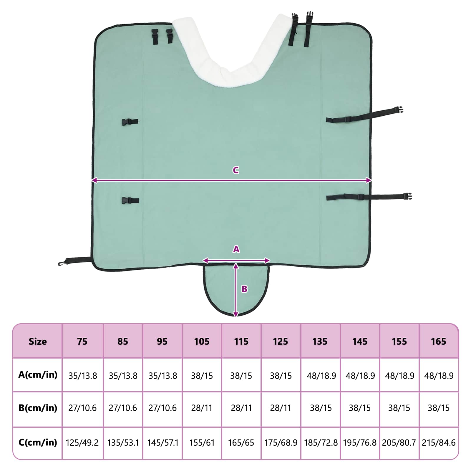 Ta konjska odeja je skrbno oblikovana, da vašim konjem nudi toploto in zaščito v mrzlem vremenu. Njena moderna zasnova s čistimi linijami in malo okraskov združuje funkcionalnost in estetski videz. Ne glede na to, ali se spopada v zimskem mrazu ali se sprošča po dolgem dnevu, bo vaš konj v tej flis odeji ostal prijetno udoben. Praktična zasnova omogoča uporabo v različnih zunanjih nastavitvah, kar skrbita za toploto in stil. Kakovosten polarni flis: Narejena iz vrhunskega polarnega flisa, ta odeja nudi odlično toploto in mehkobo. Flis je znan po lahkosti in omogoča konju svobodno gibanje. Z vrhunsko izolacijo ohranja vašega konja toplega tudi v najhladnejših dneh, kar jo dela idealno za zunanjo uporabo. Funkcionalne sponke: Opremljena s prilagodljivimi sponkami, ta odeja omogoča prilagojeno prileganje, ki se prilagaja konjem. Sponke zagotavljajo udobje in varnost ter zmanjšujejo možnost premikanja odeje, medtem ko je konj v gibanju. To omogoča mirno srce, ker veste, da je vaš konj zaščiten in topel. Večnamenska zasnova prevleke: Z odstranljivo prevleko je odejo enostavno vzdrževati. Prevleko lahko preprosto odstranite in operete v pralnem stroju pri 30 stopinjah, kar jo ohranja svežo. Manj skrbi za čistost pomeni več časa za vašega konja. Vremensko odporna zasnova: Z vetroodporno zasnovo ta odeja obdrži grdo vreme stran. Njena struktura se upira močnim vremenskim razmeram in zagotavlja udobje ter zaščito vašemu konju. Ta trpežnost poskrbi, da odeja dobro služi skozi zimo. Praktična shranjevalna funkcija: Zložljiva zasnova omogoča enostavno shranjevanje, ko je ne potrebujete. Enostavno jo zložite in prihranite prostor. To omogoča, da odejo shranite kjerkoli, ko jo ne uporabljate, ter je vedno pripravljena na naslednje hladno vreme.