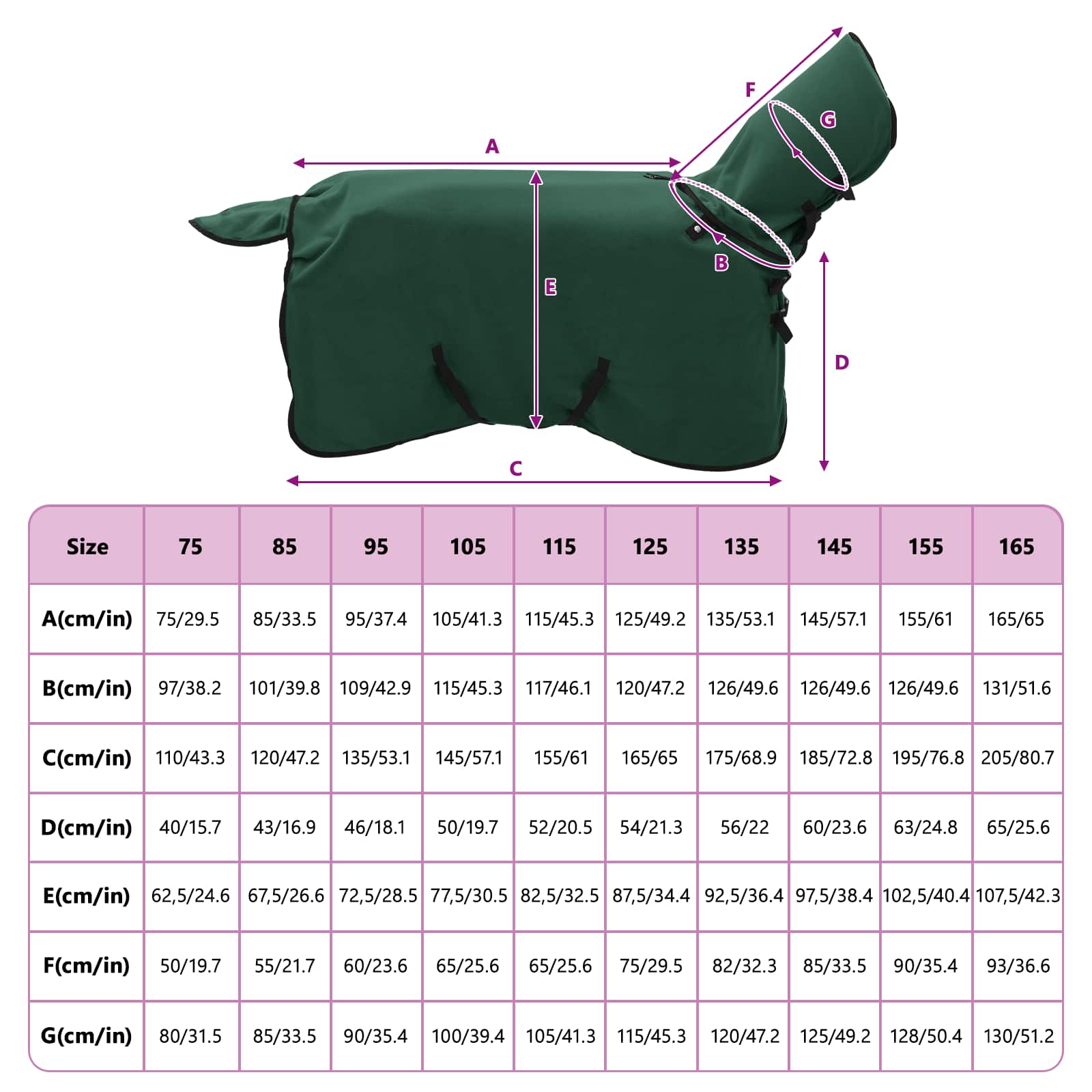 Ta odeja za konje kombinira moderni slog in praktičnost, da vašemu konju zagotovi toploto in udobje pozimi. Narejena iz trpežnega poliestra s sladko žametno teksturo, prinaša kanček luksuza. S preprostim in stilskim dizajnom je namenjena izključno zunanji uporabi, kar zagotavlja, da vaš konj uživa v naravi brez neprijetnosti. Njena tesna prileganje je idealna za ohranjanje konjev v udobju, kar jo dela super dodatek za zimski garderobi. Podrobnosti o materialu: Odeja je narejena iz poliestra, kar pomeni, da je zelo trpežna in odporna na vremenske vplive. Žametna tekstura ne samo, da daje luksuzni občutek, ampak nudi tudi udobje vašemu konju in zagotavlja toploto brez draženja. Odstranljiva prevleka: Funkcija snemljive prevleke omogoča super enostavno čiščenje. Preprosto jo odstranite in operite v pralnem stroju pri 30 stopinjah — hitra rešitev za ohranjanje čistoče in dolgoživost odeje. Prilagodljive lastnosti: Odeja ima snemljive dele, tako da jo lahko prilagodite glede na velikost vašega konja. Ta funkcionalnost zagotavlja, da odeja dobro prilega in preprečuje vdor hladnega zraka. Zimska nujnost: Specifično zasnovana za zimsko uporabo, ta odeja ohranja konje tople tudi pri nizkih temperaturah, saj nudi odlično izolacijo. Enostavno vzdrževanje: Hvala trpežnemu materialu, ki ga lahko perete v pralnem stroju, in enostavnim odstranljivim komponentam, je skrb za to odejo enostavna, kar zagotavlja, da ostaja sveža in čista za zdravje in udobje vašega konja.