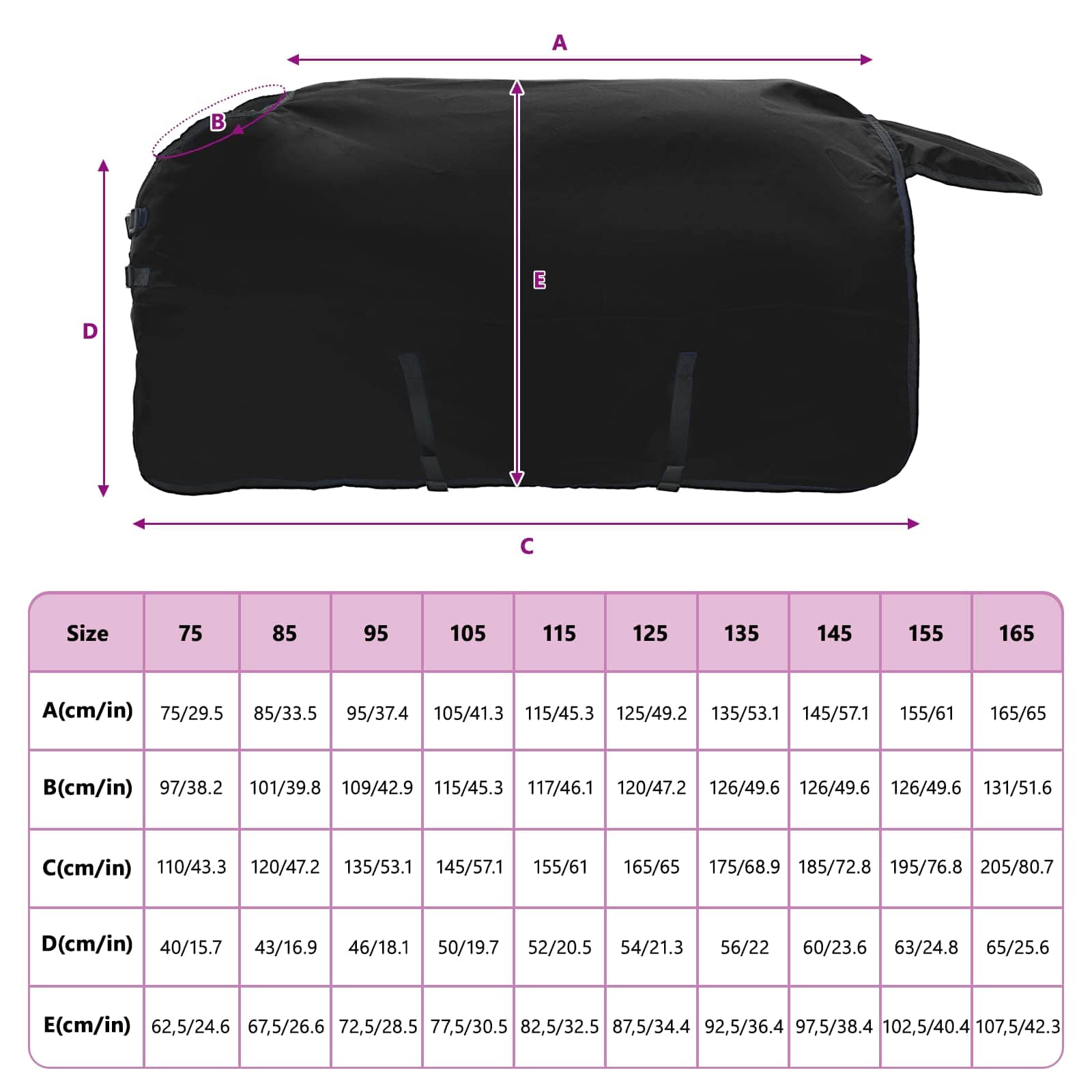 Ta moderna konjska odeja ponuja eleganten in praktičen izdelek za konjeniške navdušence. Z minimalističnim dizajnom se odlično prilega vsakemu hlevu. Ne glede na to, ali gre za hladne zimske dni ali noči na prostem, ta odeja poskrbi za udobje in zaščito tvojega konja. Visokokakovosten poliester: Odeja z vodoodpornim poliestrom zagotavlja odlično zaščito pred dežjem in snegom. Ta trpežen material nudi toploto in ohranja konje suhe, kar lastnikom nudi mir. Enostavno pranje v pralnici pomeni dolgotrajno uporabo brez izgub v videzu ali funkcionalnosti. Funkcionalne oblikovne komponente: Odeja ima prilagodljivo zaponko in ježkaste zapirala za prilagojeno prileganje. Udobno prileganje olajša njeno uporabo ter omogoča hitro prilagajanje, ko se vreme ali aktivnost konja spremenita. Obsežne funkcije: Odeja je opremljena z odstranljivo prevleko, kar poenostavi vzdrževanje. Dodatni zaščitni elementi, kot je repna prevleka, povečujejo toplotno zaščito in ohranjajo udobje. Zložljiva zasnova omogoča priročno shranjevanje, še posebej v off-sezoni. Širok spekter uporabe: Ta odeja je primerna za različne zunanje pogoje, od bivanja v hlevih do aktivnega jahanja. Nudimo stalno toploto in prosto gibanje, kar jo postavlja kot nujen dodatek v vsakem režimu oskrbe konj. Navodila za nego: Pralna zasnova omogoča enostavno vzdrževanje, kar zagotavlja živahno in čisto uporabo. Ta funkcija nudi brezskrbno nego in ohranja odejo v super stanju skozi dolge sezone.