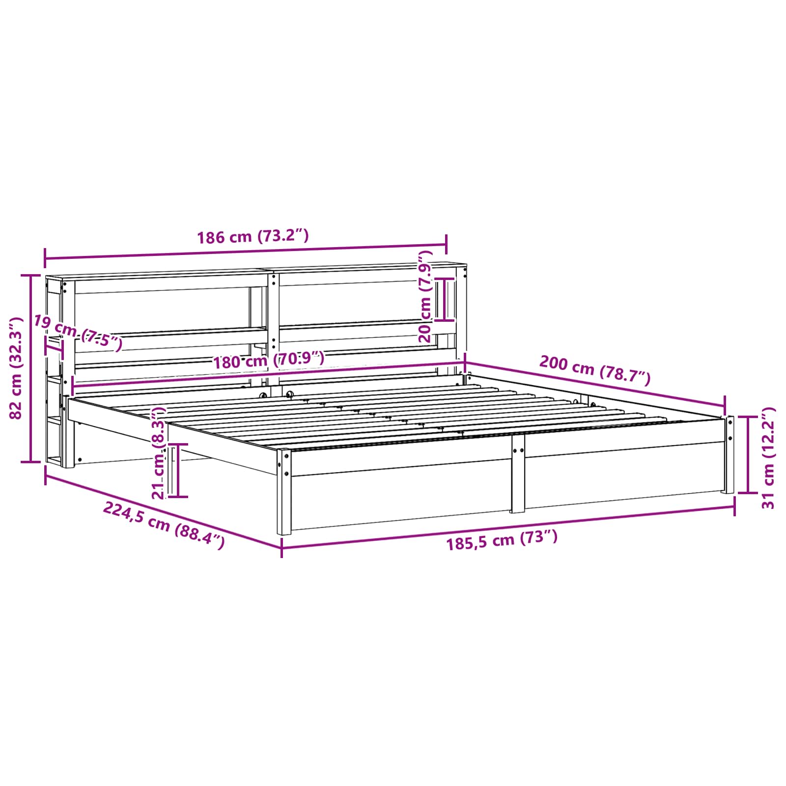 - Velikost vzmetnice: Super king (180 cm x 200 cm / 71″ x 79″)