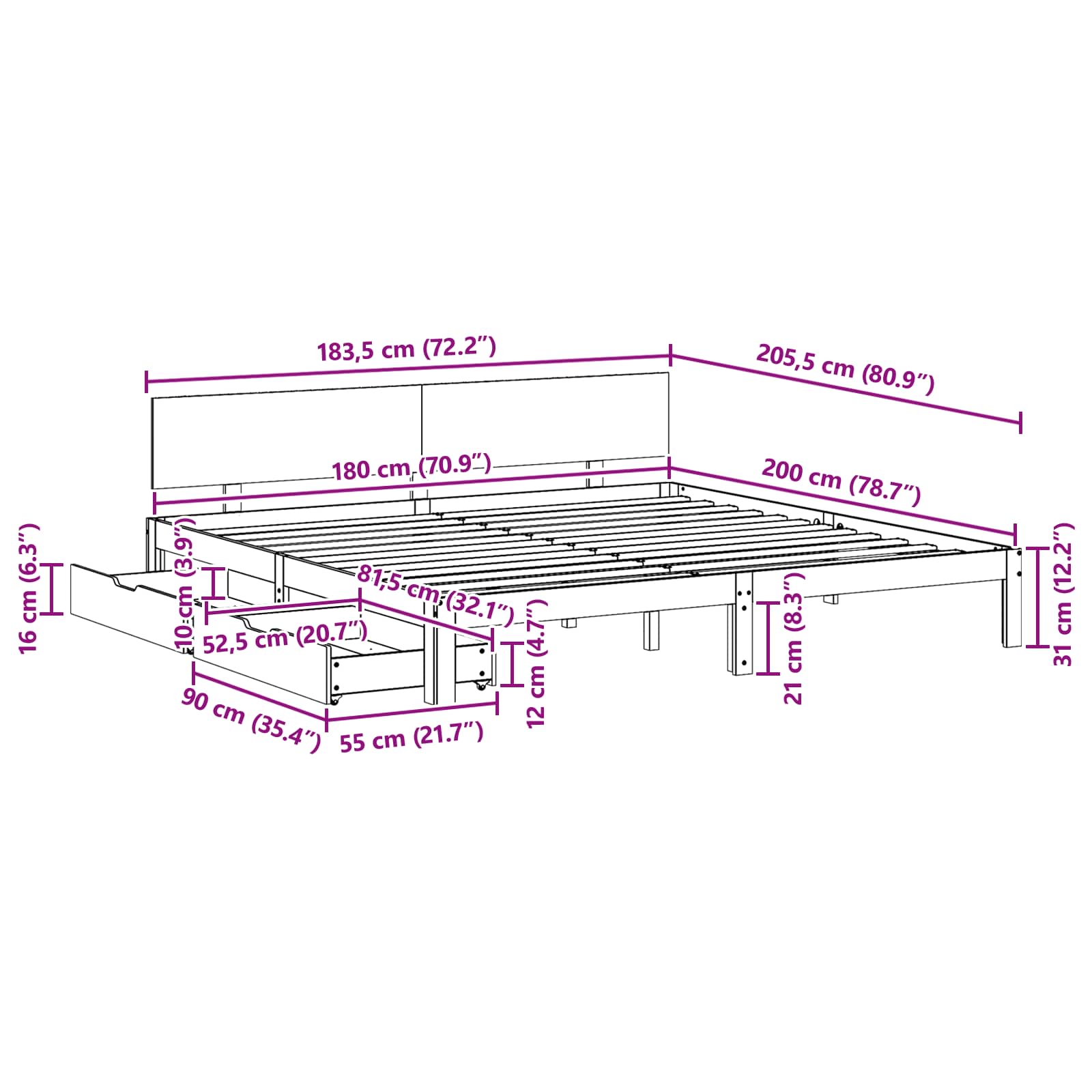 Ta lesena postelja ponuja luksuzno, a praktično rešitev za vsako moderno spalnico s svojim elegantnim pravokotnim dizajnom in robustno konstrukcijo iz borovega lesa. Različnim notranjim slokom dodaja šik osrednjo točko in enostavnost uporabe. Idealna je za tiste, ki iščejo pametne rešitve za shranjevanje, saj njeni vgrajeni predali prinašajo brezskrbno spalno okolje. Gost trden borov les: Naša postelja iz premium trdnega bora je znana po dolgi življenjski dobi in lepi rustikalni estetiki, kar primerno prispeva k stabilnosti in trdnosti pohištva. Naravne teksture zagotavljajo rafiniran priokus vsaki spalnici, pritegne pa tako ljubitelje tradicije kot moderne okuse. Podpora z letvičastim okvirjem: Postelja vsebuje letvičasto osnovo, ki natančno podpira vašo vzmetnico, dviguje udobje in odpravlja potrebo po box spring podlagi. Ta osnovna struktura zagotavlja stabilno in nemoteno spanje, kar je ključno za kvaliteten počitek. Vgrajeni predali za shranjevanje: Predali pod posteljo so premišljeno zasnovani in se brez težav premikajo po ročnih drsnikih, kar nudi enostaven dostop. Izdelani iz istega trdnega bora, učinkovito shranjujejo vaše potrebščine in s svojim usklajenim videzom zagotavljajo, da postelja ostane estetska. Sodobna preprostost: S svojimi čistimi linijami in minimalističnim dizajnom ta okvir dodaja vaši spalnici subtilno estetiko. Ravnotežje med funkcionalnostjo in slogom ga naredi brezčasnega, odlično se prilega različnim domačim dekorjem. Preprosto vzdrževanje: Enostavno vzdrževanje zagotavlja, da postelja ostane dolgotrajna; zadošča, da jo obrišete s suho krpo. Sledite navodilom za nego, da ohranite njen videz in stabilnost skozi čas.