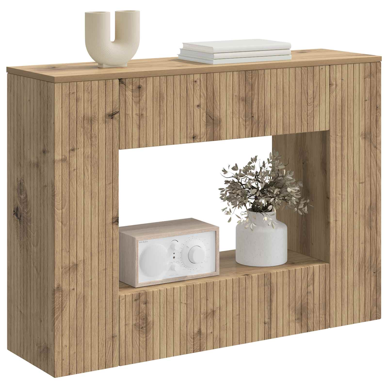 Ta konzolna miza preprosto povezuje funkcionalnost in stil, zato je odlična izbira za vsak dom. Njen sodoben dizajn se brez težav vklaplja v različne notranje sloge, od modernih do prehodnih. Z obilo možnosti shranjevanja je vsestranska, ne glede na to, ali je v hodniku, dnevni sobi ali pisarni. Zasnovana je za uporabnost in estetiko, ponuja udobje s svojimi praktičnimi funkcijami in izboljša izgled vašega prostora. Premium materiali: Izdelana iz trpežnega inženirskega lesa, ta konzolna miza prinaša toplino in naravne odtenke, ki se lepo vključujejo v različne sloge dekoracije. Njena robustna konstrukcija zagotavlja dolgo življenjsko dobo, zato je zanesljiva izbira za vsakodnevno uporabo. Funkcionalne možnosti shranjevanja: Miza ima več predelov za shranjevanje, vključno s policami in predali, kar omogoča enostavno organizacijo osebnih predmetov, dekoracije in vsakdanjih stvari. Poskrbi, da vaš prostor ostane urejen in vizualno privlačen. Soden moden dizajn: S čistimi linijami in minimalistično silhueto ta konzolna miza prinaša pridih sophistication vsakemu prostoru. Njena zasnova se lepo povezuje z različnimi notranjimi temami, ter ponuja funkcionalnost in stil. Več možnosti uporabe: Idealna za različne postavitve, ta konzolna miza izpolni različne namene – od osrednje točke v hodniku do funkcionalne konzolne mize v pisarni. Njena prilagodljivost jo naredi dragoceno izbiro za tiste, ki iščejo tako obliko kot funkcijo v domačem okolju. Enostavno vzdrževanje: Zasnovana za enostavno vzdrževanje, je skrb za izgled mize preprosta. Z mehko, vlažno krpo jo enostavno očistite, medtem ko se lahko čudovito ohrani brez močnih kemikalij.