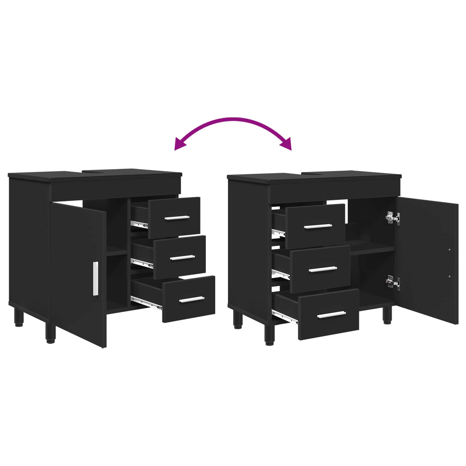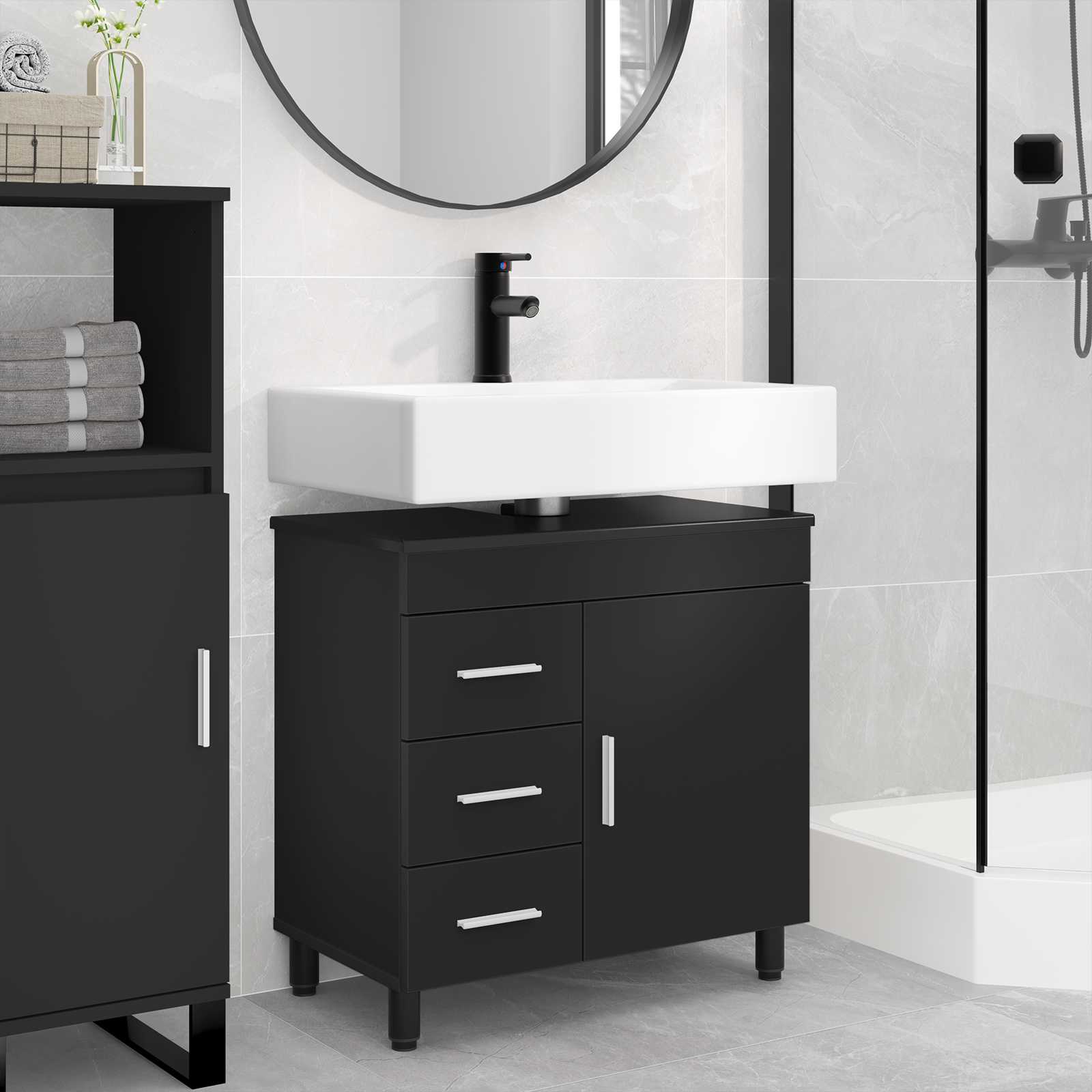 - 1 x kopalniška omarica pod umivalnikom z nastavljivimi kovinskimi nogami