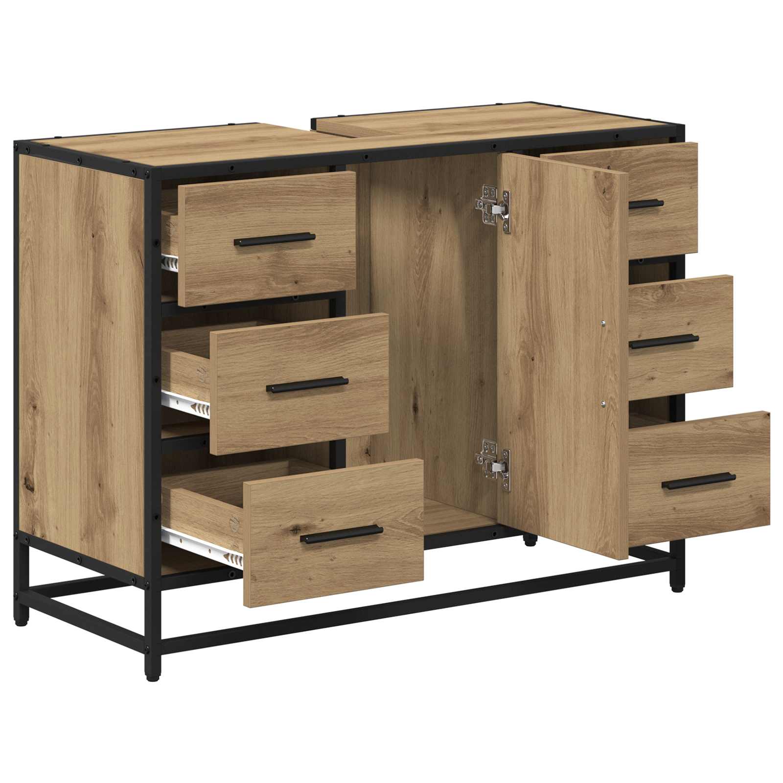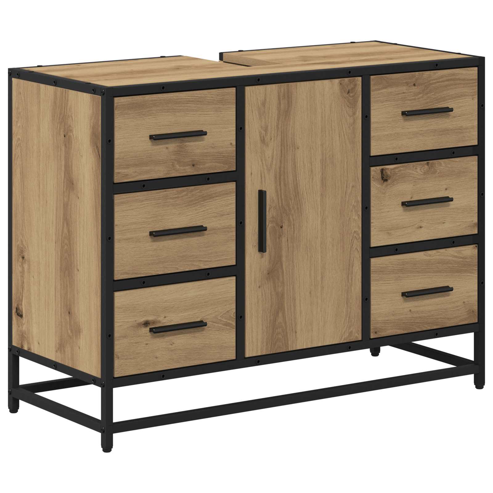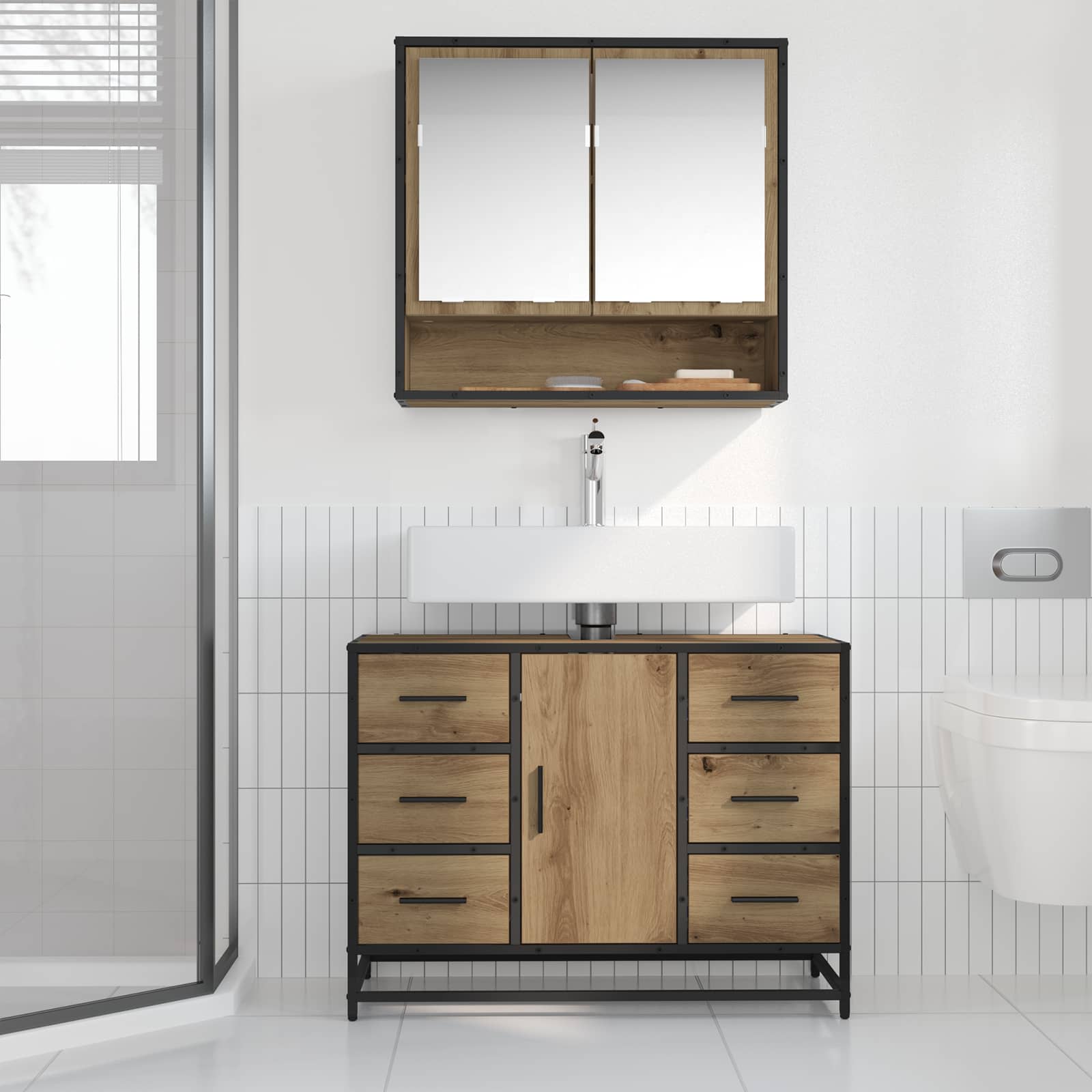 Ta moderna kopalniška omara ponuja eleganten in stilen način za organizacijo tvojih kopalniških potrebščin. S svojo pravokotno obliko in prefinjenim izgledom se brez težav prilega vsakemu sodobnemu kopalniškemu slogu. Namenjena je vsem, ki iščejo dobro kombinacijo estetske vrednosti in uporabnosti, saj ti pomaga ohranjati čisto in urejeno površino v tvojem domu. Materiali: Omara je iz vrhunskega inženirskega lesa, kar ji daje visoko odpornost na obrabo in vsakodnevno rabo. Ta izbira materialov zagotavlja dolgoživost in moderno površino, ki se lepo sklada z ostalim pohištvom. Vključene komponente: S postavljenimi jeklenimi nogami, ki nudijo močno podporo, omara ponuja stabilno konstrukcijo, ki drži tvoje kopalniške potrebščine. Ročaji iz mat jekla dodajajo moderen pridih in nudijo dober oprijem, kar povečuje udobje pri uporabi. Lastnosti / Funkcija / Oblika: Ta omara je oblikovana s čistimi linijami in praktično zasnovo, kar odraža sodoben slog. Njena pametna raba prostora je dragocena za manjših kopalnicah, saj omogoča maksimalno shranjevanje brez kompromisov na stilu. Priporočena uporaba: Omara je odlična za različne velikosti kopalnic in se dobro obnese tako doma kot v hotelih. Nudi obilo prostora za shranjevanje toaletnih potrebščin, brisač in ostalih nujnosti ter jih drži organizirane in pri roki. Osnovna nega in vzdrževanje: Ohraniti prvotni videz omare je enostavno; samo obriši z vlažno krpo, da se znebiš prahu in umazanije. Ta enostavna nega zagotavlja dolgoživost in ohranja omaro v tvojem kopalniškem prostoru tudi dolga leta.