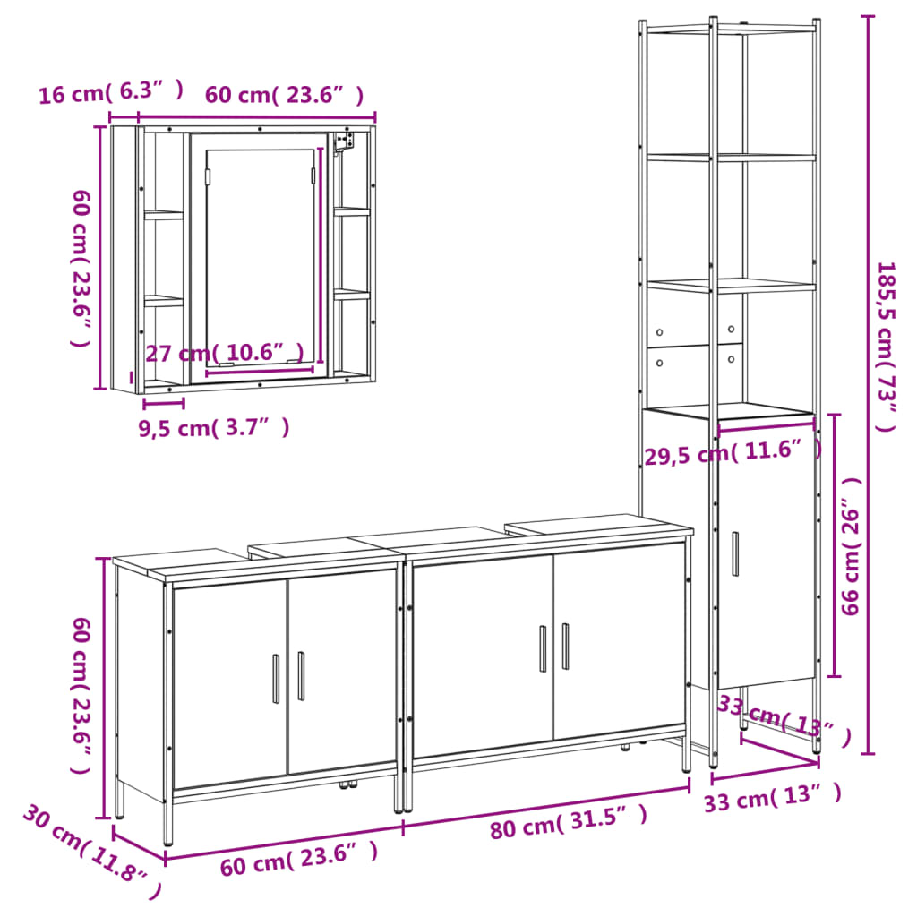 - Dimenzije omarice za umivalnik (L): 80 x 30 x 60 cm (D x Š x V)