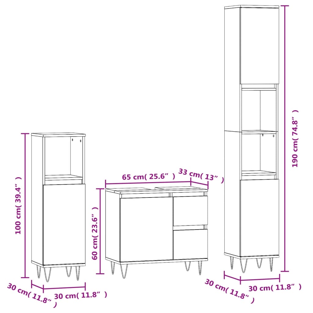 Ta trendovski komplet kopalniškega pohištva je odličen dodatek k vaši kopalnici, saj ji daje urejen in osupljiv videz! Vzdržljiv material: Inženirski les se ponaša z izjemno kakovostjo, gladko površino ter močjo, stabilnostjo in odpornostjo na vlago. Železne noge: Železne noge dodajo vašim notranjim prostorom sodoben in umirjen slog, hkrati pa zagotavljajo stabilnost.Veliko prostora za shranjevanje: Kopalniška omarica zagotavlja različne možnosti shranjevanja in prostoren prostor za shranjevanje predmetov v kopalnici. Praktičen dizajn: Zgornji del kopalniške omarice je idealen za namestitev umivalnika. Opozorilo:Za preprečitev prevračanja je treba ta izdelek uporabiti s priloženo napravo za pritrditev na steno. Dobro je vedeti:Umivalnik ni priložen.Vijaki in čepi za notranjost stene niso priloženi. Svetujemo vam, da poiščete in uporabite vijake in zatiče, ki so primerni za vaše stene. Če niste prepričani, se lahko posvetujete s strokovnjakom. Preberite in upoštevajte vse korake v navodilih.
