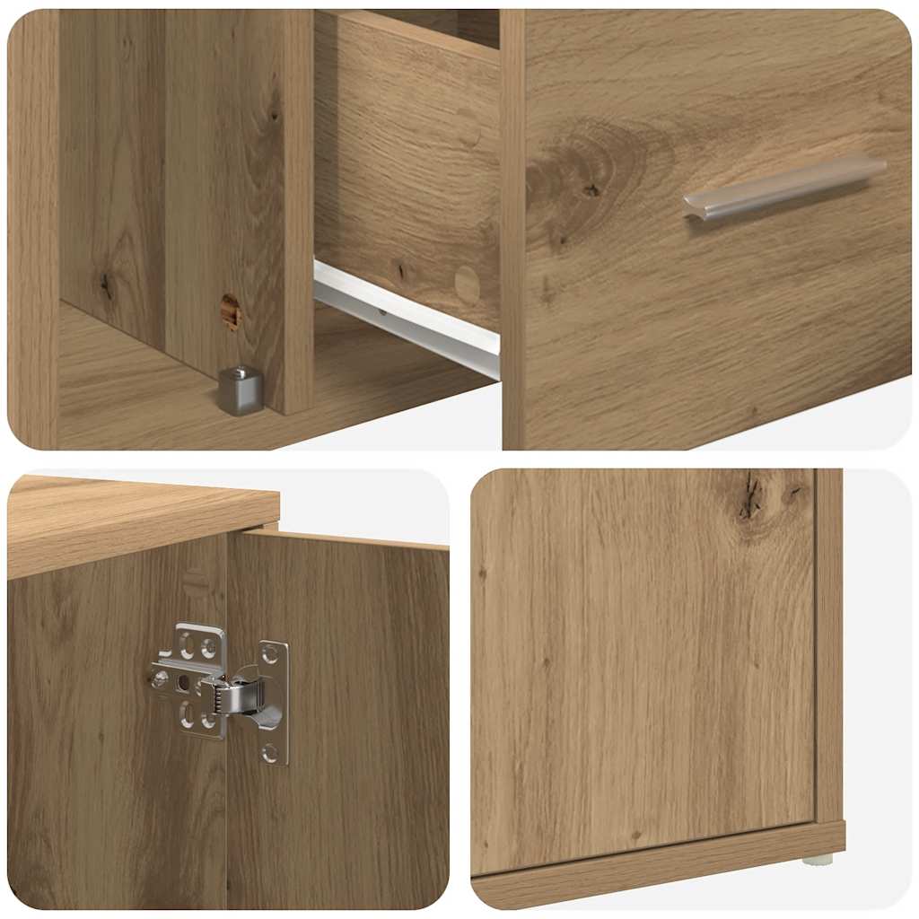 Ta kotna omarica s praktičnim dizajnom je resnično privlačen dodatek za vaš dom. Material z dolgo življenjsko dobo: Inženirski les se ponaša z izjemno kakovostjo, gladko površino ter močjo, stabilnostjo in odpornostjo na vlago.2 načina montaže: To vogalno polico je mogoče sestaviti v širšo omarico ali vogalno omarico v obliki črke L, da popolnoma ustreza vašim potrebam po prostoru in shranjevanju.Veliko prostora za shranjevanje: V omarici s predelki in predali je dovolj prostora za shranjevanje, da bodo različne vsakodnevne potrebščine dobro urejene in dosegljive.Robustna mizna plošča: Na omarico lahko postavite okrasne predmete, albume s fotografijami ali manjše rastline.Enostavno vzdrževanje: Zaradi gladke površine je kotno enoto enostavno očistiti z vlažno krpo, saj ne potrebuje veliko vzdrževanja.