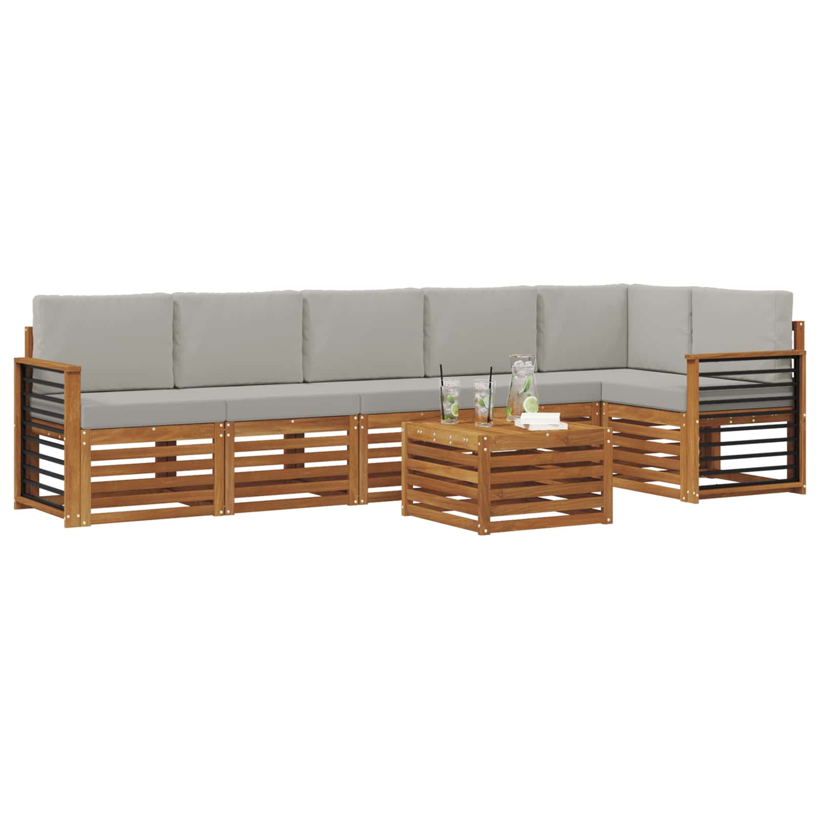 Ta sekcijski kavčni set za zunanjo uporabo, narejen iz trdnega akacijevega lesa, predstavlja stil in vzdržljivost. Je idealen za vrtove, terase in obrobje bazenov. S sodobno zasnovo ti kosi ponujajo vsestransko modularno postavitev, prilagojeno vsakemu zunanjemu prostoru in priložnosti. Ustvarite prijetno in sproščujoče vzdušje z rjavimi odtenki, ki se brez težav zlijejo z naravno okolico ter nudijo popolno izbiro za dolge dneve in večere. Materiali: Ta set je narejen iz trdnega akacijevega lesa in prikazuje naravno lesno teksturo z osupljivim rjavim finišem, kar nudi tako moč kot estetski videz. Akacija je znana po svoji trdnosti in odpornosti na vremenske vplive ter zagotavlja dolgotrajno uporabo, ohranja svoj videz skozi leto. Vključene komponente: Uživajte v udobju z udobnimi akacijevimi lesnimi naslonjali in sedeži, ki ponujajo podporo. Vsaka komponenta dopolnjuje celotno zasnovo in zagotavlja ergonomsko izkušnjo sedenja. Lastnosti / funkcija / zasnova: Zasnovano z rebrasto površino, ki izboljšuje pretok zraka in preprečuje nabiranje vode, ta set ohranja funkcionalnost in vizualno privlačnost. Moderna zasnova, preprosta in čista, se poda sodobnim zunanjim prostorom in ponuja tako uporabnost kot stil. Priporočene uporabe: Idealno za vrtnarjenje, terase ali bazenske nastavitve, ta sekcijski kavč ustreza različnim potrebam po zabavi in sprostitvi. Modularna zasnova omogoča prilagljive ureditve, ki se hitro prilagajajo neformalnim srečanjem ali mirnim trenutkom. Varnost in vzdrževanje: Ohranite njegov prvotni videz z enostavno nego – obrišite s vlažno krpo, da odstranite prah ali umazanijo. Tako pohištvo ostaja privlačno in očarljivo.
