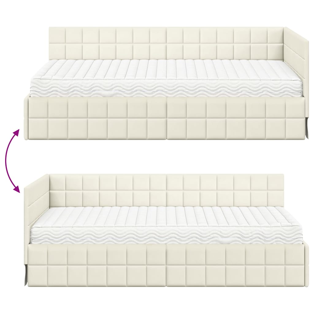 Ta kotna postelja z žametno vzmetnico je pravi simbol sodobne elegance, zasnovana da se brez težav prilega vsakemu prostoru. Njena pravokotna oblika in žametna tekstura prinašata sofisticiranost in udobje. Ta platformna postelja ponuja moderni estetski občutek, hkrati pa nudi trdna podlago za sproščujoče spanje. Predstavljaj si, kako se potopiš v luksuzno srednje trdo vzmetnico, ki se prilagodi vsem spalnim položajem, kar zagotavlja mirne noči in sveža jutra. Vzglavnik prihrani prostor ter izboljša preprost dizajn, kar ustvarja svetišče za počitek. Premium žametni material S prijetnim in mehak žametom vas ta okvir postelje pritegne ter dodaja občutek topline. Luksu zen material je popolna izbira za tiste, ki iščejo stil in udobje. Vzglavnik pritrjen na steno Vzglavnik iz udobnega žameta je pritrjen na steno, kar je inovativen pristop. To prihrani prostor in zagotavlja elegantno ozadje za vašo posteljo. Srednje trda vzmetnica Vzmetnica ponuja lepo ravnotežje med mehkobo in podporo. Primerna je za vse spalne sloge in nudi udoben spanec brez napetosti. Robustna konstrukcija iz vezanega lesa Konstruirana iz trdnega vezanega lesa, ta okvir je trpežen in stabilen. Njena zasnova zagotavlja dolgotrajno uporabo in prinaša odlične noči. Eleganten moderni videz S preprosto in funkcionalno obliko, postelja popestri vsako spalnico s svojim modernim šarmom. Čiste črte in preprosto oblikovanje so odlična izbira za različne notranje teme.