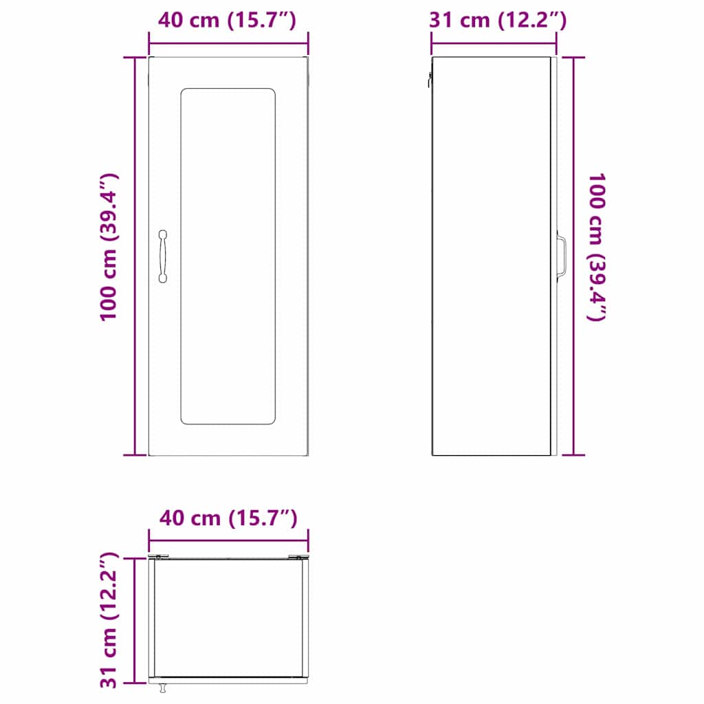 - Splošne dimenzije: 40 x 31 x 100 cm (Š x G x V)