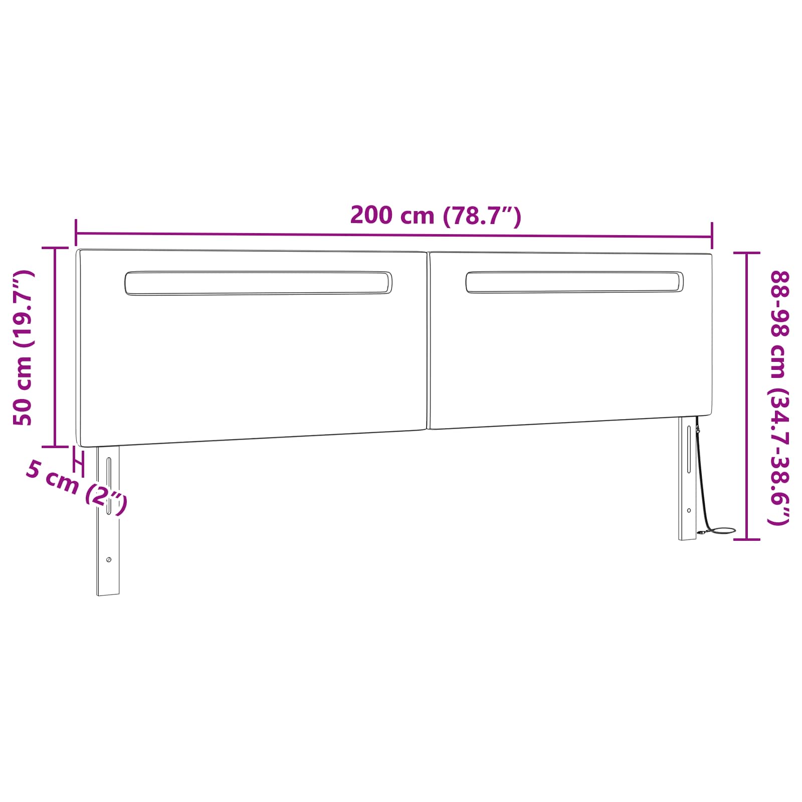 To sodobno LED vzglavje bo preoblikovalo tvojo spalnico v chic in funkcionalno svetišče. Ima modereren videz, ki brez težav povezuje stil in funkcionalnost ter je idealen dodatek za vsako minimalistično ali sodobno spalnico. Vzglavje se ponaša s čistimi linijami in preprostim pravokotnim oblikovanjem, ki prostoru prinaša svežino. Izkoristi ta kos in dvigni vzdušje svoje intimne oaze, ne glede na to, ali želiš več dramatičnosti ali mirne sprostitve. Vzdržljiva konstrukcija: To vzglavje je izdelano iz inženirskega lesa in trdnega borovega lesa, kar mu daje stabilnost in dolgo življenjsko dobo. Njegovo robustno ogrodje zagotavlja, da bo dolgo ostalo v tvoji spalnici, vseeno pa nudi močno podporo tvojim ležiščem. Uporabljeni materiali so izbira skrbno premišljena, da prenesejo obrabo in obdržijo lep videz tudi pri pogosti uporabi. Prilagodljiva višina: Uživaj v udobju dveh višin—88 cm in 98 cm—kar ti omogoča, da vzglavje prilagodiš tako, da ga boš kar najbolje izkoristil. Ne glede na to, ali želiš višji videz ali nižji za subtilno eleganco, ta nastavitev ponuja svobodo tvojega sloga. Osvetlitev vzdušja: Vgrajen RGB LED trak takoj dvigne razpoloženje v prostoru s prilagodljivo svetlobo. Z različnimi nastavitvami barv lahko enostavno preklapljaš med sproščujočimi in živahnimi toni, kar ustvari pravo vzdušje za večere ali družabna srečanja. Ta lastnost prinaša funkcionalnost in kreativno noto. Enostavno vzdrževanje: Vzglavje je lahko vzdrževati—samo ga obriši s suho krpo, da zmanjšaš nabiranje prahu. Ta preprost pristop zagotavlja, da ostane privlačno in čisto kot na dan namestitve, kar ti prihrani čas. Preprosta sestava: V paketu najdeš razumljiva navodila, za sestavo potrebujeta dve osebi in izvijač. Navodila so jasna, kar postopek močno poenostavi in naredi brezskrbnega.