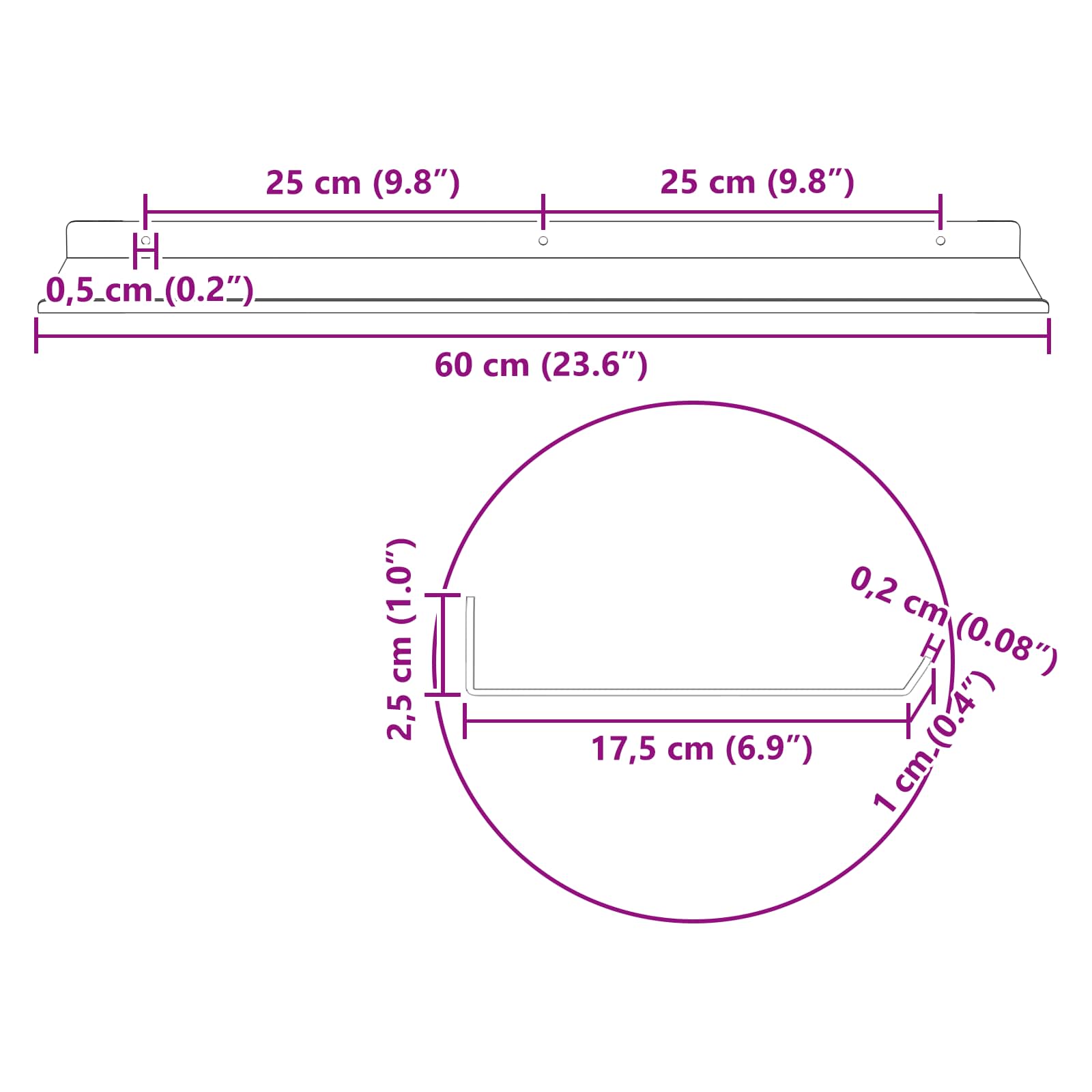 - Splošne dimenzije: 60 x 18 x 2,5 cm (D x Š x V)
