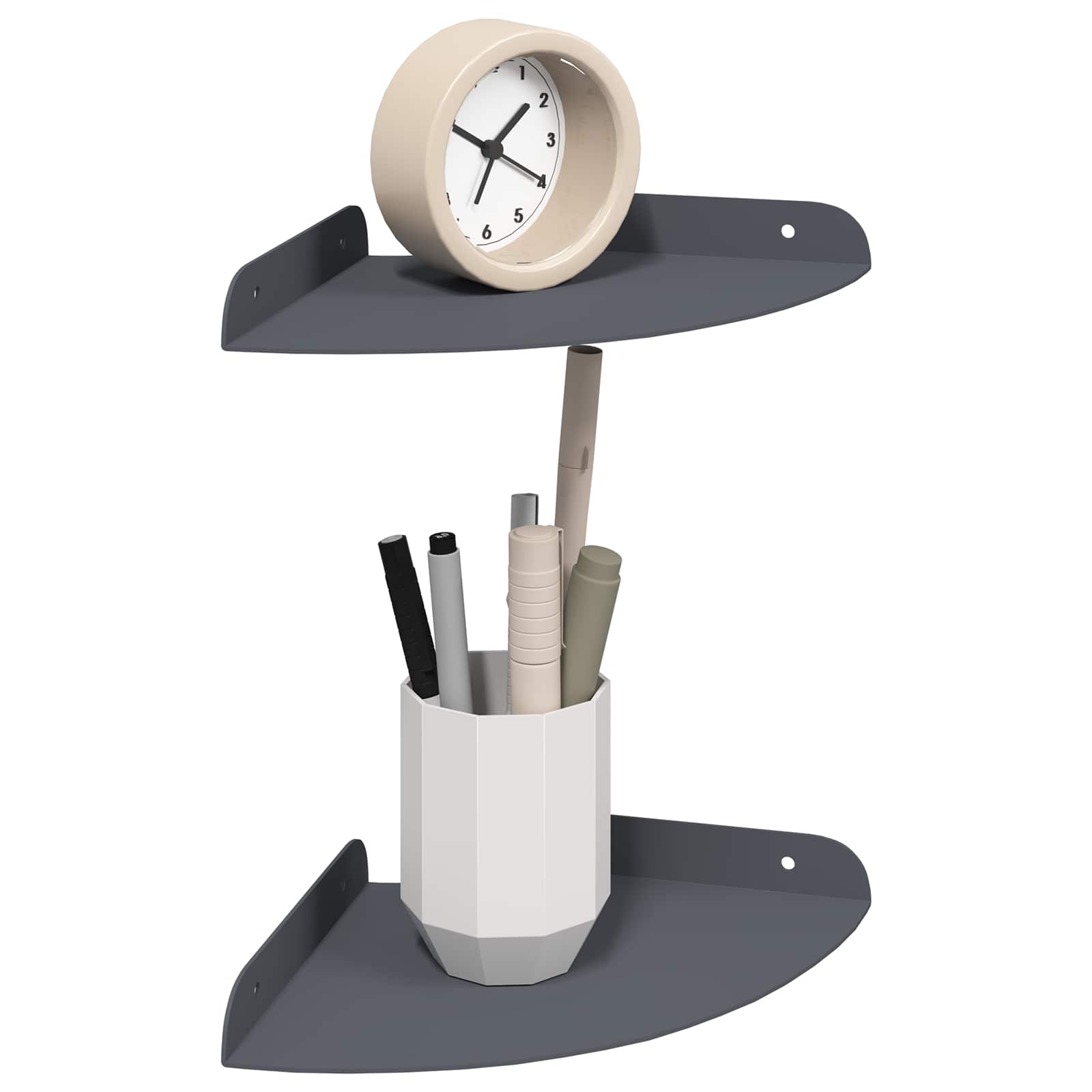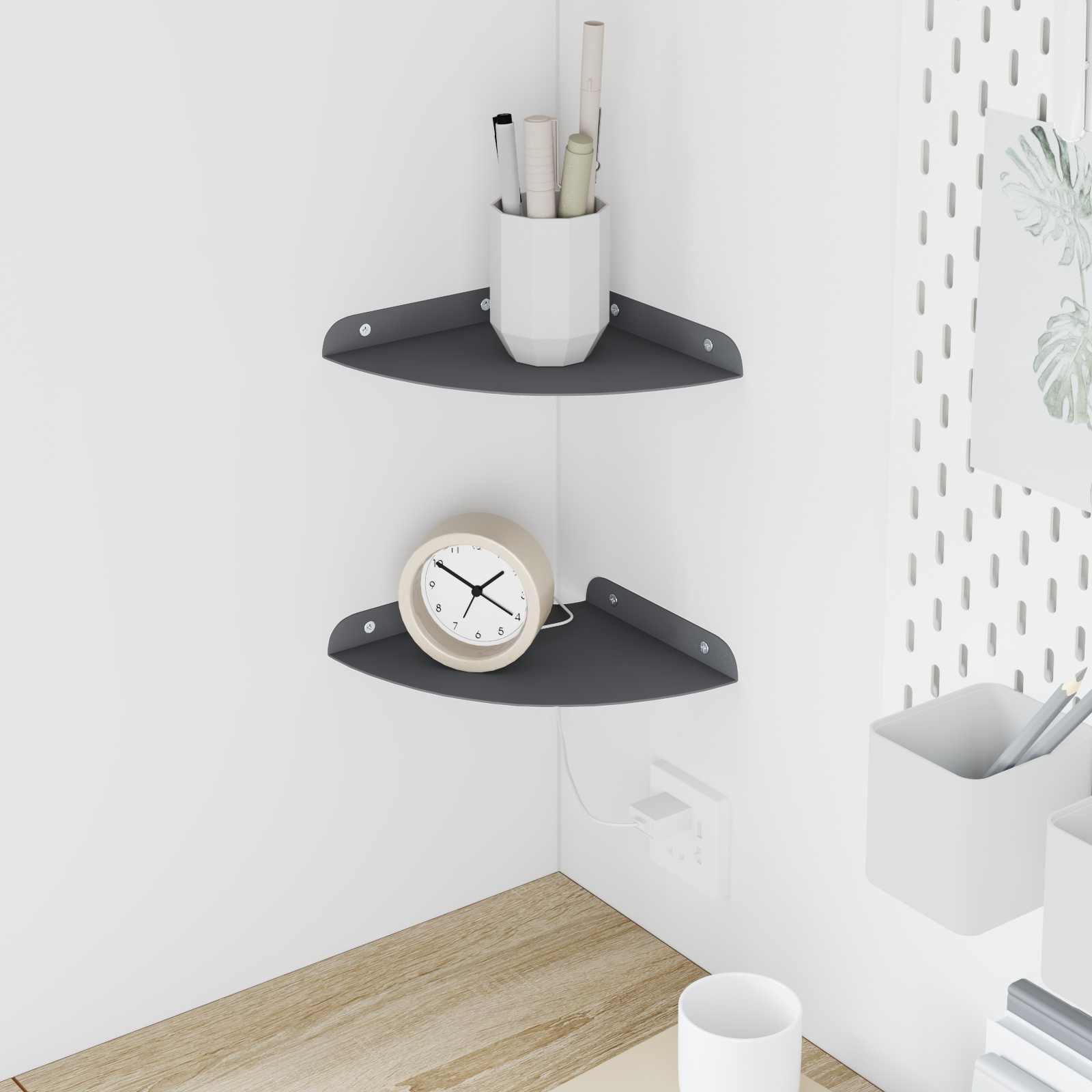 Ta jeklena polica ponuja super kombinacijo moderne zasnove in praktične funkcionalnosti. Natančno oblikovana v četrtni krožni obliki, je odlična za tiste, ki obožujejo minimalističen stil, brez da bi morali žrtvovati uporabnost. Ne glede na to, kjer jo daš, vedno izboljša prostor in nudi odlično shranjevanje. Kakovost materiala: Izdelana iz kvalitetnega jekla, ta polica drži različne predmete brez upogibanja. Njena robustna konstrukcija zagotavlja dolgo življenjsko dobo, tudi ob redni uporabi. Gladek jekleni finiš dodaja moderno eleganco in se prilega različnim dekorativnim stilom. Večnamenska montaža: S sistemom za montažo na steno in v kotu maksimizira prostor, kar je odlično za manjša stanovanja ali prostor z omejenim shranjevanjem. Ta dvig predmeti s tal ustvarja urejen in čist videz ter se prilega različnim kotičkom doma. Funkcionalna zasnova: Polica ima dvignjene robove, ki preprečujejo padanje predmetov, kar je super za varnost. S svojo modernostjo se lepo ujema z notranjostjo, ima tudi dodaten prostor za okraševanje, knjige ali kuhinjske potrebščine. Vzdrževanje: Zelo enostavna za vzdrževanje, potrebuje le občasno brisanje z vlažno krpo za prah in umazanijo. Tako preprosto vzdrževanje je super za zaposlene osebe, saj ohranja eleganten izgled z minimalnim trudom. Zahteve za montažo: Potrebno je sestavljanje z izvijačem in kladivom. Dve osebi sta priporočeni za varno namestitev. Navodila za namestitev so tudi jasna, kar olajša postopek.