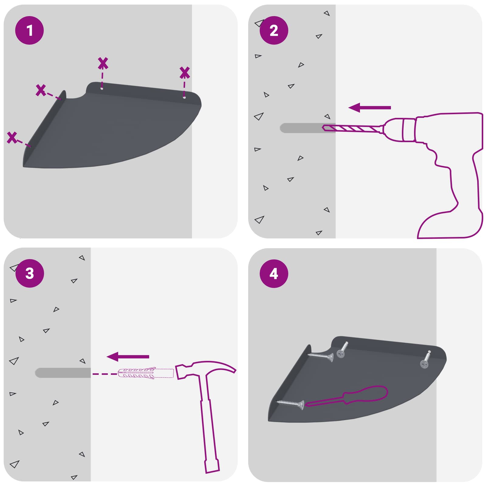 Ta jeklena polica ponuja super kombinacijo moderne zasnove in praktične funkcionalnosti. Natančno oblikovana v četrtni krožni obliki, je odlična za tiste, ki obožujejo minimalističen stil, brez da bi morali žrtvovati uporabnost. Ne glede na to, kjer jo daš, vedno izboljša prostor in nudi odlično shranjevanje. Kakovost materiala: Izdelana iz kvalitetnega jekla, ta polica drži različne predmete brez upogibanja. Njena robustna konstrukcija zagotavlja dolgo življenjsko dobo, tudi ob redni uporabi. Gladek jekleni finiš dodaja moderno eleganco in se prilega različnim dekorativnim stilom. Večnamenska montaža: S sistemom za montažo na steno in v kotu maksimizira prostor, kar je odlično za manjša stanovanja ali prostor z omejenim shranjevanjem. Ta dvig predmeti s tal ustvarja urejen in čist videz ter se prilega različnim kotičkom doma. Funkcionalna zasnova: Polica ima dvignjene robove, ki preprečujejo padanje predmetov, kar je super za varnost. S svojo modernostjo se lepo ujema z notranjostjo, ima tudi dodaten prostor za okraševanje, knjige ali kuhinjske potrebščine. Vzdrževanje: Zelo enostavna za vzdrževanje, potrebuje le občasno brisanje z vlažno krpo za prah in umazanijo. Tako preprosto vzdrževanje je super za zaposlene osebe, saj ohranja eleganten izgled z minimalnim trudom. Zahteve za montažo: Potrebno je sestavljanje z izvijačem in kladivom. Dve osebi sta priporočeni za varno namestitev. Navodila za namestitev so tudi jasna, kar olajša postopek.