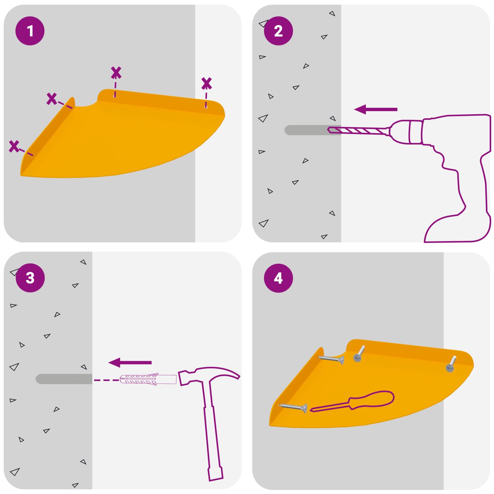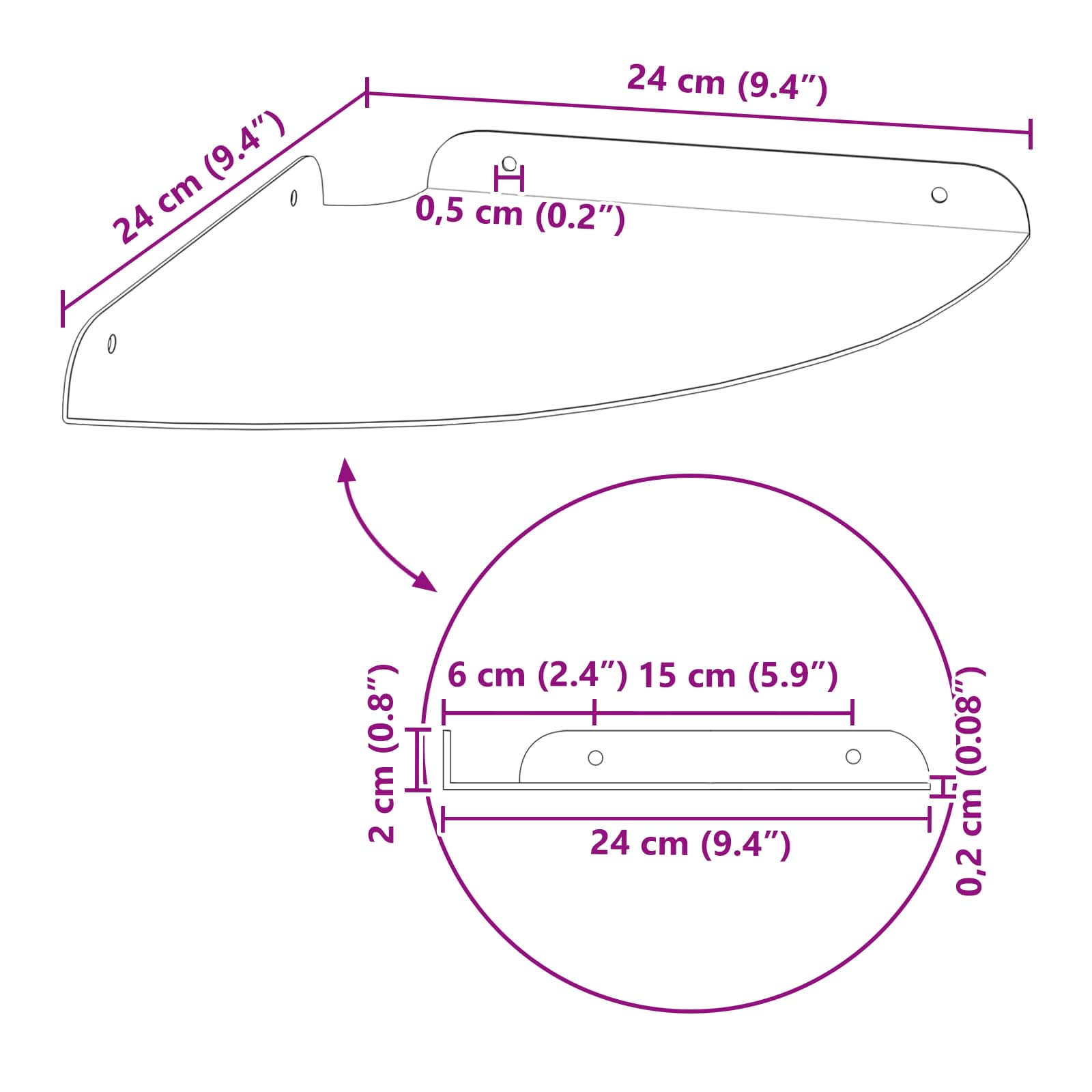 Ta jeklena polica ponuja super kombinacijo moderne zasnove in praktične funkcionalnosti. Natančno oblikovana v četrtni krožni obliki, je odlična za tiste, ki obožujejo minimalističen stil, brez da bi morali žrtvovati uporabnost. Ne glede na to, kjer jo daš, vedno izboljša prostor in nudi odlično shranjevanje. Kakovost materiala: Izdelana iz kvalitetnega jekla, ta polica drži različne predmete brez upogibanja. Njena robustna konstrukcija zagotavlja dolgo življenjsko dobo, tudi ob redni uporabi. Gladek jekleni finiš dodaja moderno eleganco in se prilega različnim dekorativnim stilom. Večnamenska montaža: S sistemom za montažo na steno in v kotu maksimizira prostor, kar je odlično za manjša stanovanja ali prostor z omejenim shranjevanjem. Ta dvig predmeti s tal ustvarja urejen in čist videz ter se prilega različnim kotičkom doma. Funkcionalna zasnova: Polica ima dvignjene robove, ki preprečujejo padanje predmetov, kar je super za varnost. S svojo modernostjo se lepo ujema z notranjostjo, ima tudi dodaten prostor za okraševanje, knjige ali kuhinjske potrebščine. Vzdrževanje: Zelo enostavna za vzdrževanje, potrebuje le občasno brisanje z vlažno krpo za prah in umazanijo. Tako preprosto vzdrževanje je super za zaposlene osebe, saj ohranja eleganten izgled z minimalnim trudom. Zahteve za montažo: Potrebno je sestavljanje z izvijačem in kladivom. Dve osebi sta priporočeni za varno namestitev. Navodila za namestitev so tudi jasna, kar olajša postopek.