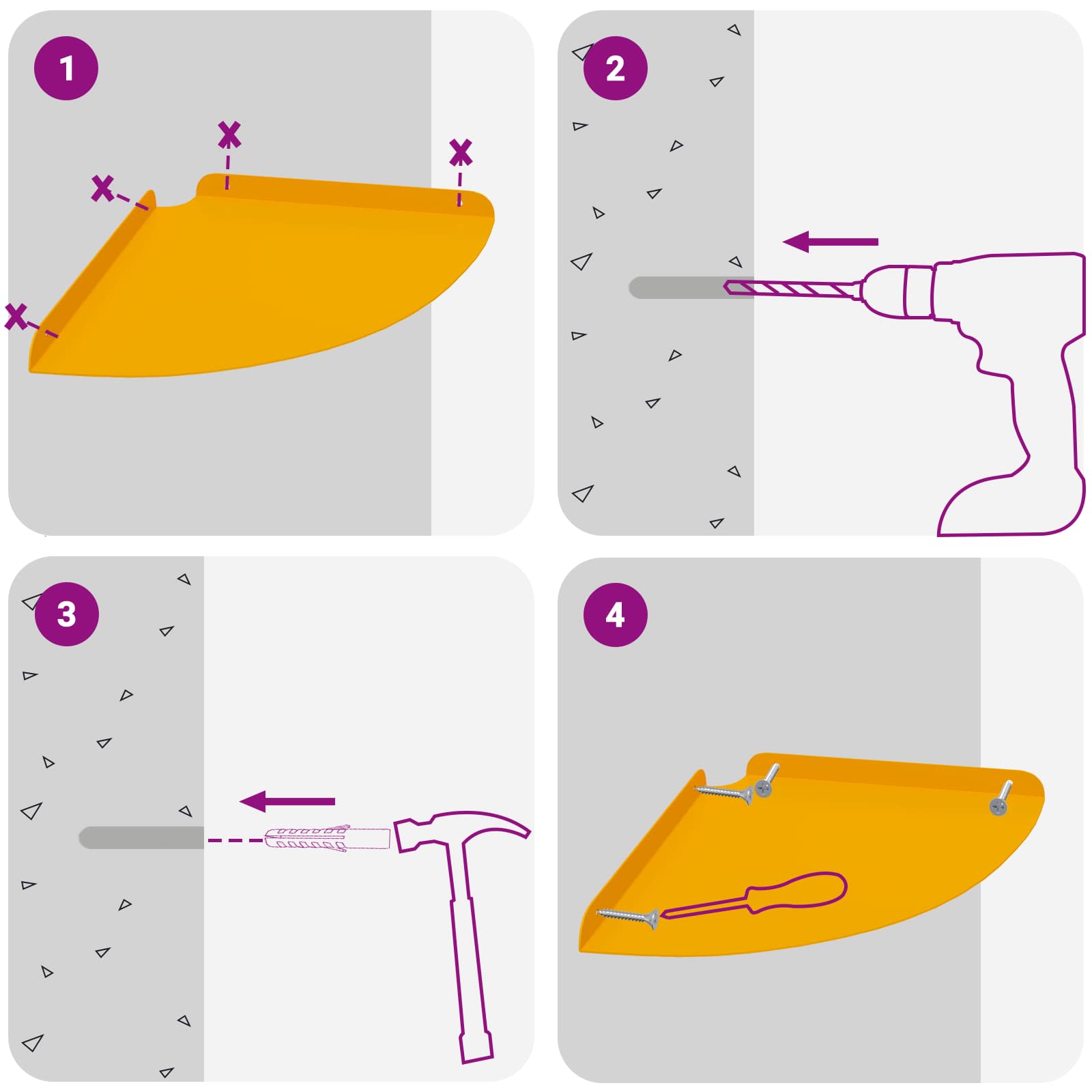 Ta jeklena polica ponuja super kombinacijo moderne zasnove in praktične funkcionalnosti. Natančno oblikovana v četrtni krožni obliki, je odlična za tiste, ki obožujejo minimalističen stil, brez da bi morali žrtvovati uporabnost. Ne glede na to, kjer jo daš, vedno izboljša prostor in nudi odlično shranjevanje. Kakovost materiala: Izdelana iz kvalitetnega jekla, ta polica drži različne predmete brez upogibanja. Njena robustna konstrukcija zagotavlja dolgo življenjsko dobo, tudi ob redni uporabi. Gladek jekleni finiš dodaja moderno eleganco in se prilega različnim dekorativnim stilom. Večnamenska montaža: S sistemom za montažo na steno in v kotu maksimizira prostor, kar je odlično za manjša stanovanja ali prostor z omejenim shranjevanjem. Ta dvig predmeti s tal ustvarja urejen in čist videz ter se prilega različnim kotičkom doma. Funkcionalna zasnova: Polica ima dvignjene robove, ki preprečujejo padanje predmetov, kar je super za varnost. S svojo modernostjo se lepo ujema z notranjostjo, ima tudi dodaten prostor za okraševanje, knjige ali kuhinjske potrebščine. Vzdrževanje: Zelo enostavna za vzdrževanje, potrebuje le občasno brisanje z vlažno krpo za prah in umazanijo. Tako preprosto vzdrževanje je super za zaposlene osebe, saj ohranja eleganten izgled z minimalnim trudom. Zahteve za montažo: Potrebno je sestavljanje z izvijačem in kladivom. Dve osebi sta priporočeni za varno namestitev. Navodila za namestitev so tudi jasna, kar olajša postopek.