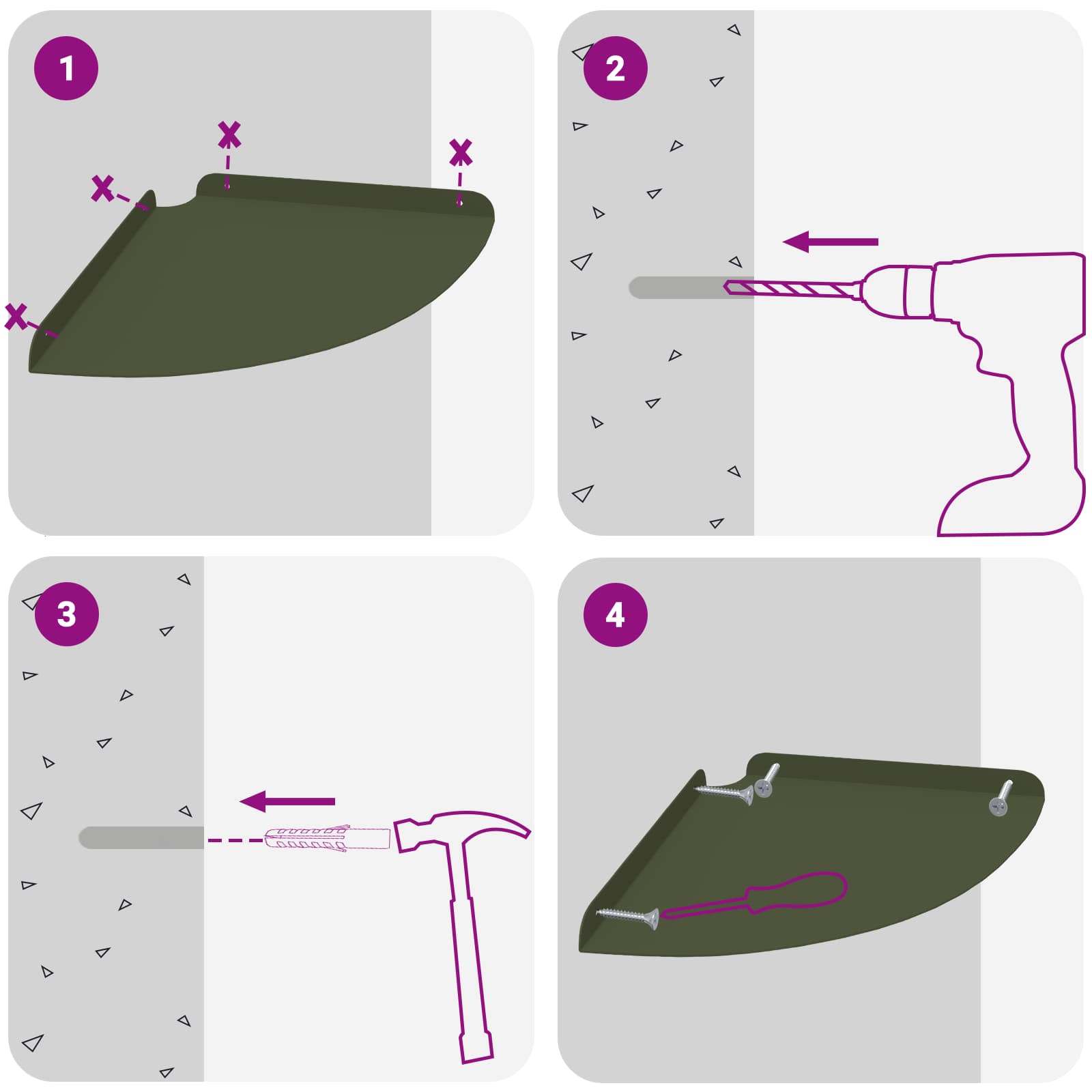Ta jeklena polica ponuja super kombinacijo moderne zasnove in praktične funkcionalnosti. Natančno oblikovana v četrtni krožni obliki, je odlična za tiste, ki obožujejo minimalističen stil, brez da bi morali žrtvovati uporabnost. Ne glede na to, kjer jo daš, vedno izboljša prostor in nudi odlično shranjevanje. Kakovost materiala: Izdelana iz kvalitetnega jekla, ta polica drži različne predmete brez upogibanja. Njena robustna konstrukcija zagotavlja dolgo življenjsko dobo, tudi ob redni uporabi. Gladek jekleni finiš dodaja moderno eleganco in se prilega različnim dekorativnim stilom. Večnamenska montaža: S sistemom za montažo na steno in v kotu maksimizira prostor, kar je odlično za manjša stanovanja ali prostor z omejenim shranjevanjem. Ta dvig predmeti s tal ustvarja urejen in čist videz ter se prilega različnim kotičkom doma. Funkcionalna zasnova: Polica ima dvignjene robove, ki preprečujejo padanje predmetov, kar je super za varnost. S svojo modernostjo se lepo ujema z notranjostjo, ima tudi dodaten prostor za okraševanje, knjige ali kuhinjske potrebščine. Vzdrževanje: Zelo enostavna za vzdrževanje, potrebuje le občasno brisanje z vlažno krpo za prah in umazanijo. Tako preprosto vzdrževanje je super za zaposlene osebe, saj ohranja eleganten izgled z minimalnim trudom. Zahteve za montažo: Potrebno je sestavljanje z izvijačem in kladivom. Dve osebi sta priporočeni za varno namestitev. Navodila za namestitev so tudi jasna, kar olajša postopek.