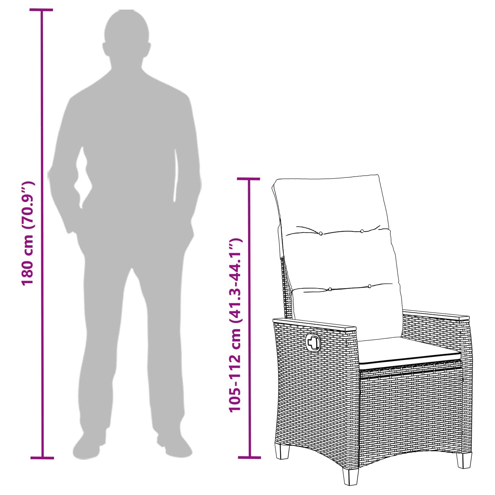 Ta moderna ležeča vrtna stol je kot nalašč za vse, ki cenijo stil in funkcionalnost. Ima vitko silhueto in eleganten videz, ki povezuje estetiko z udobjem, pri čemer se prašno premazano jeklo lepo ujema z mehkim poli ratanom. Ta stol te vabi, da se sprostiš v vrtovih in na terasah, saj se brez težav zlije z naravo zaradi svojih pomirjujočih naravnih tonov in modernih linij. Vzdržljivi materiali: Ta stol je izdelan iz poli ratana, ki je znan po odpornosti proti sončnim žarkom in vlagi, kar zagotavlja dolgo trajnost v različnih vremenskih razmerah. Prašno premazano jeklo v osnovni strukturi dodaja odpornost proti rji, kar povečuje dolgoživost. Skupaj oblikujeta popolno harmonijo stila in funkcionalnosti, ter ohranita privlačnost še v neugodnih podnebnih razmerah. Nastavljiv naslon: Prilagodi svoj položaj sproščanja enostavno z ročno nastavljivim sistemom nagiba, kar ti omogoča, da se udobno namestiš za branje, sončenje ali preprosto uživanje na prostem. Ta premišljena funkcija ti omogoča, da najdeš svoj najljubši položaj za sedenje. Udobne blazine: Dokončane so s puhastejšimi poliester blazinami, ki jih lahko enostavno odstraniš in opereš zahvaljujoč zadrgi, kar je super za nego in dolgotrajno udobje. Sodobni nasloni za roke: Izdelani so iz mehke akacijevega lesa, kar mu daje organski pridih, ki povezuje sodoben dizajn z naravno estetiko. Ti ravni nasloni dodajajo eleganten videz in nudijo čvrsto, udobno oporo za vsakodnevno uživanje na prostem. Navodila za nego: Pokrij stol, ko ni v uporabi in se izogibaj močnim kemikalijam za čiščenje, da podaljšaš njegovo življenjsko dobo. Poskrbi, da so blazine suhe in jih preprosto obriši, da ohraniš njihov privlačen videz.