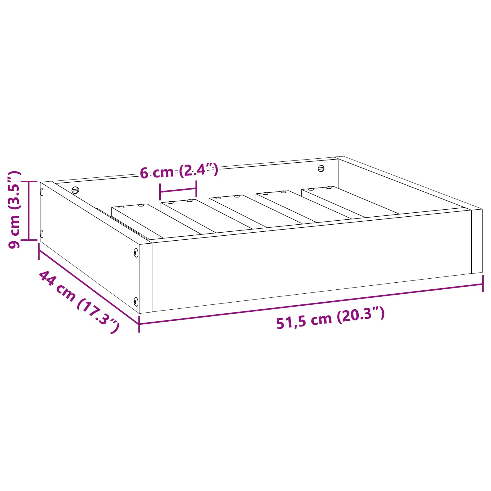 - Splošne dimenzije: 51,5 x 44 x 9 cm (D x Š x V)