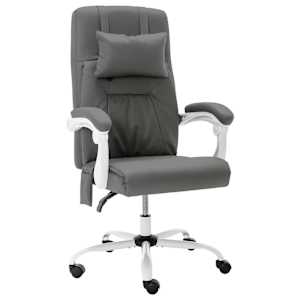 Z masažno funkcijo in možnostjo nagibanja naslonjala je ta pisarniški stol odličen dodatek za vašo pisarno. Je ergonomsko zasnovan za zagotavljanje največjega udobja med vašim napornim delovnim dnevom. Ima visoko naslonjalo za hrbet in blazino za vrat z enotočkovno masažo, zaobljena naslonjala za roke, naslonjalo za noge in debelo podložen sedež, zato zagotavlja udobje med dolgimi delovnimi urami. Po višini nastavljiv dizajn zagotavlja prilagajanje višine in doseganju udobja za zdravo poravnavo hrbtenice. Ta naslanjač je opremljen z najlonskimi kolesi, zato ga lahko preprosto premikate. Nagiba se od 95° do 135° ter ponuja želen položaj za sproščanje.